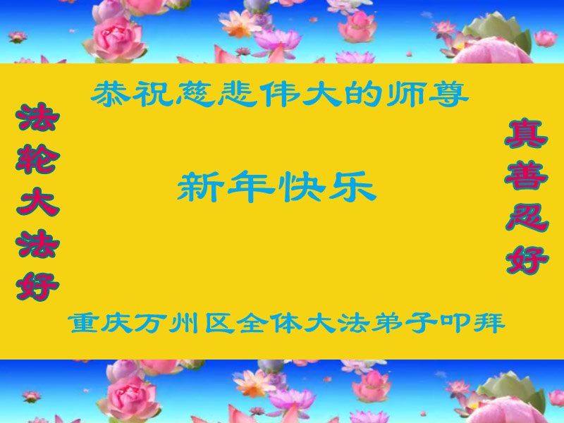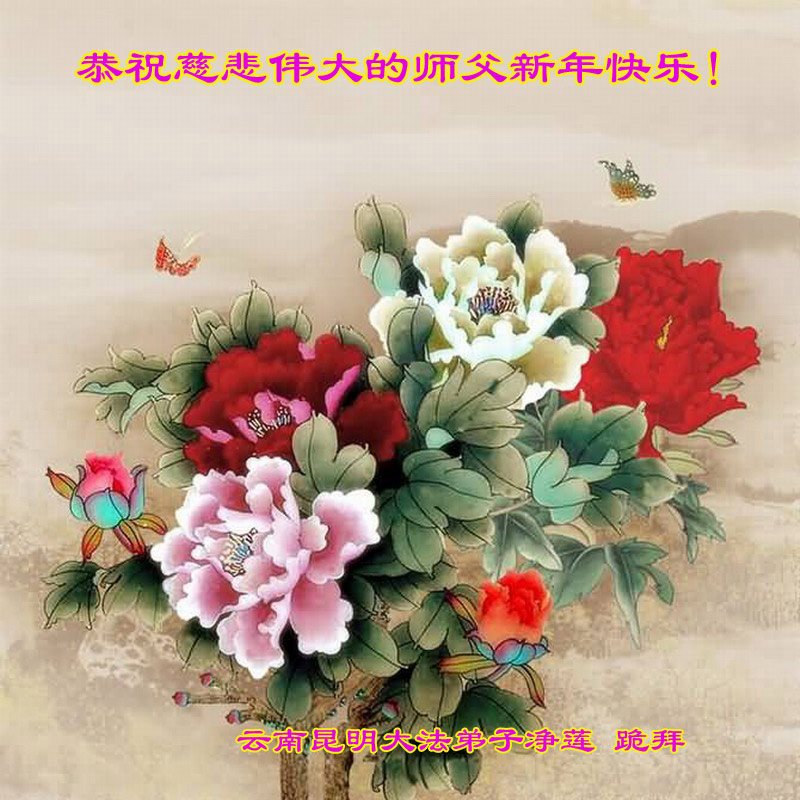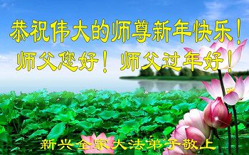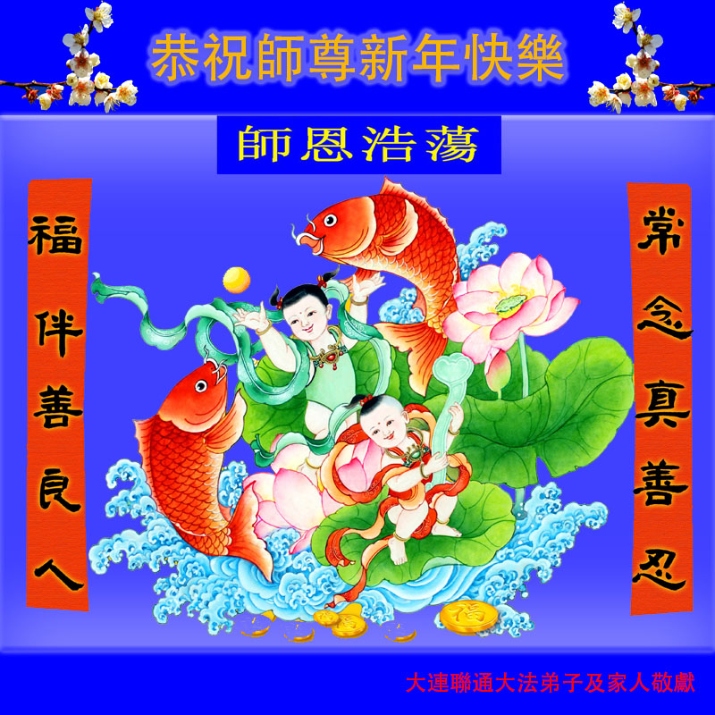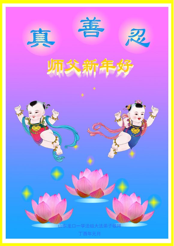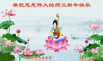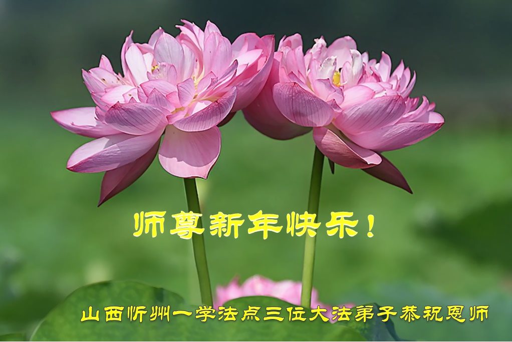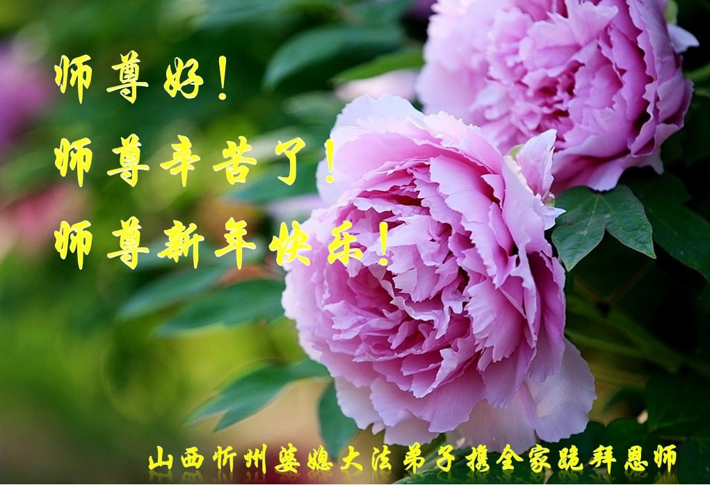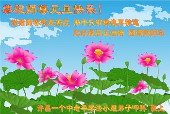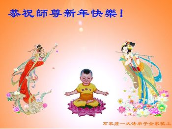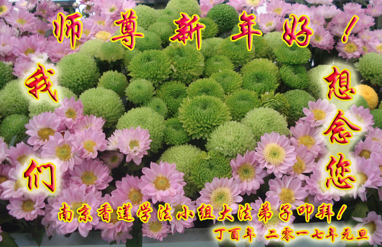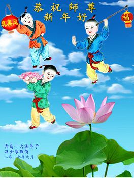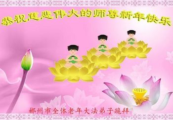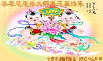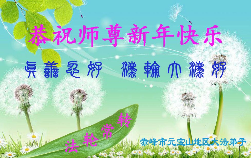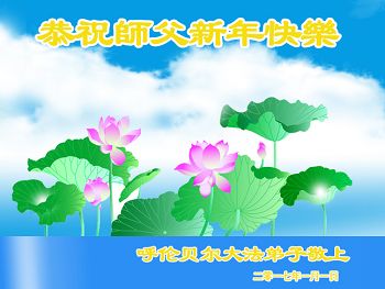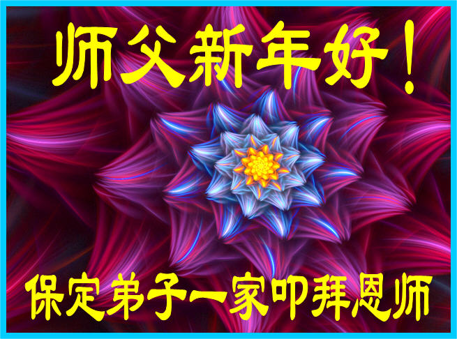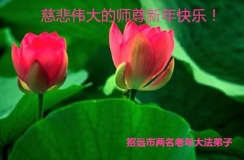 在新的一年到来之日,我们这些老年大法弟子及其家人向您慈悲伟大的师尊拜年!恭祝师父新年好!