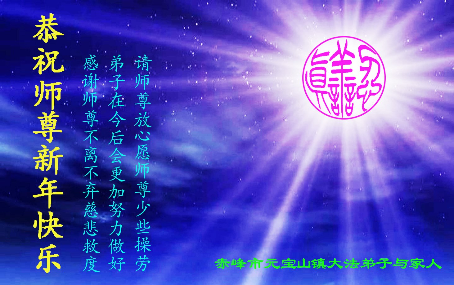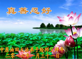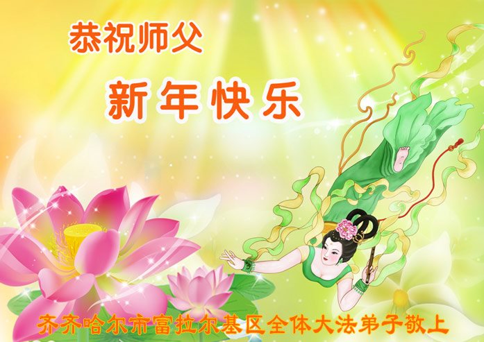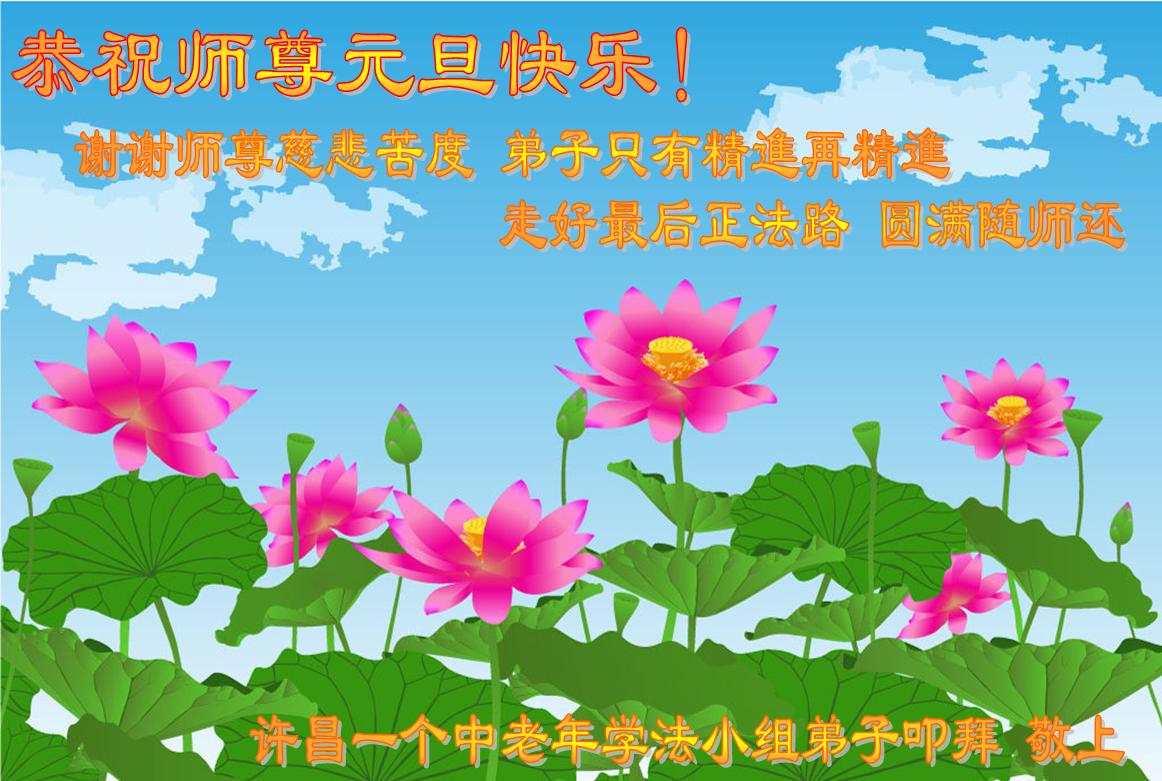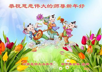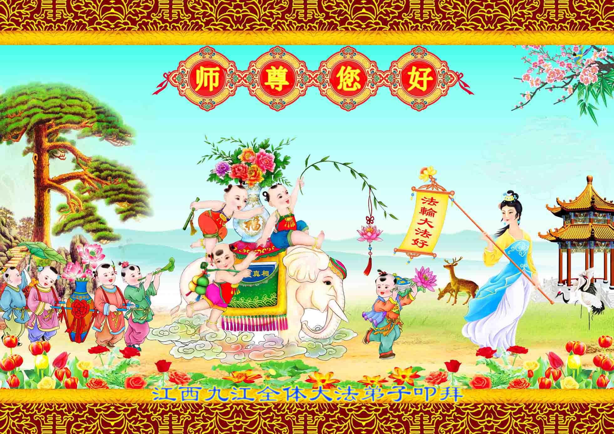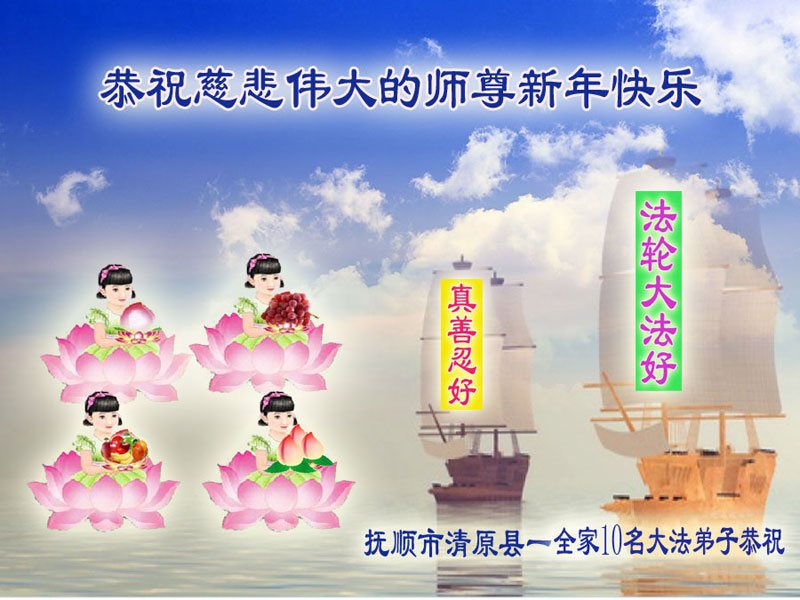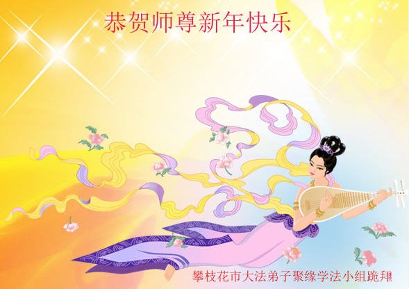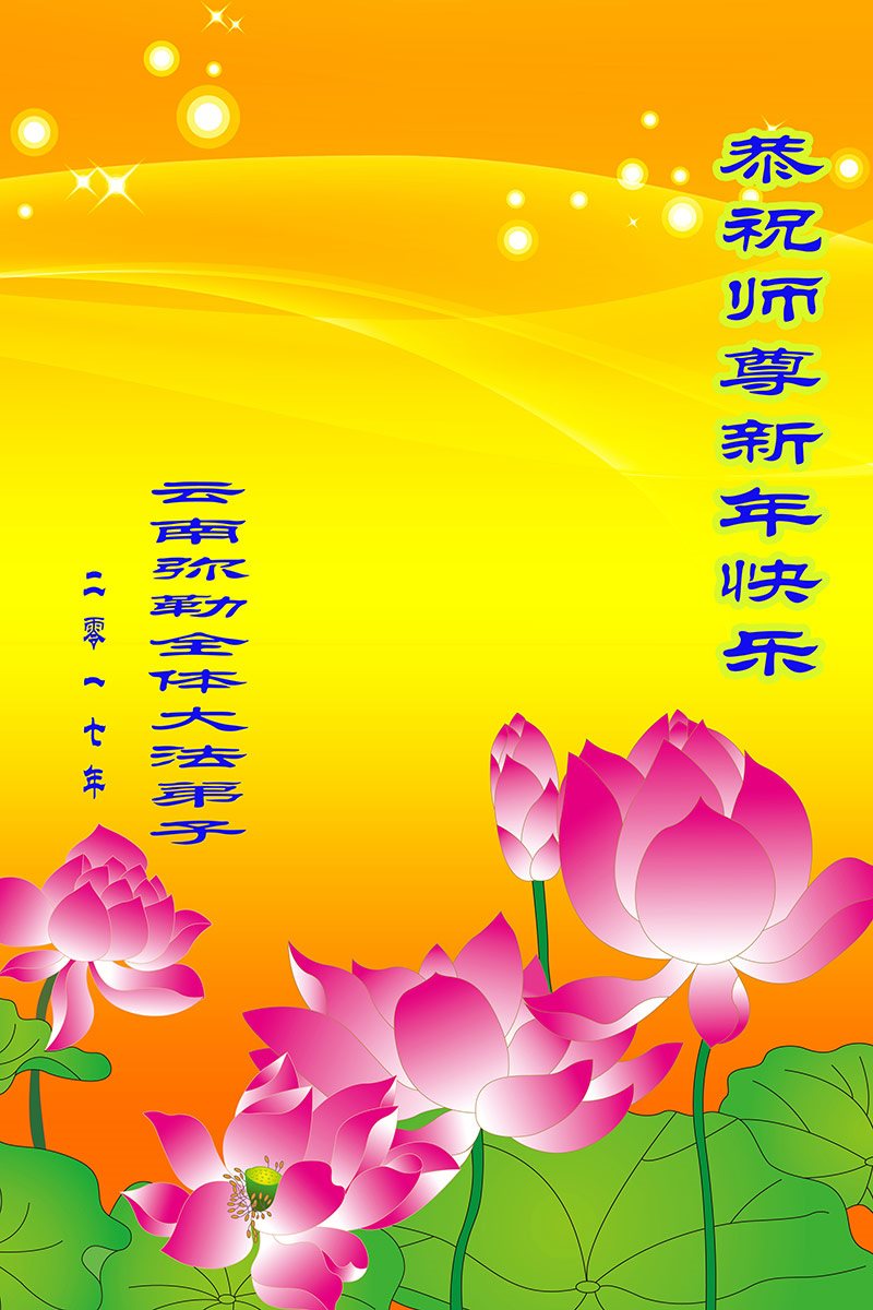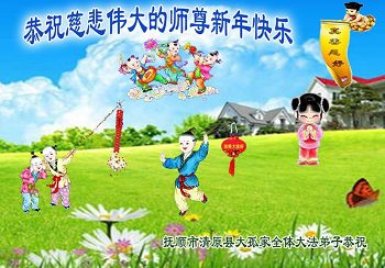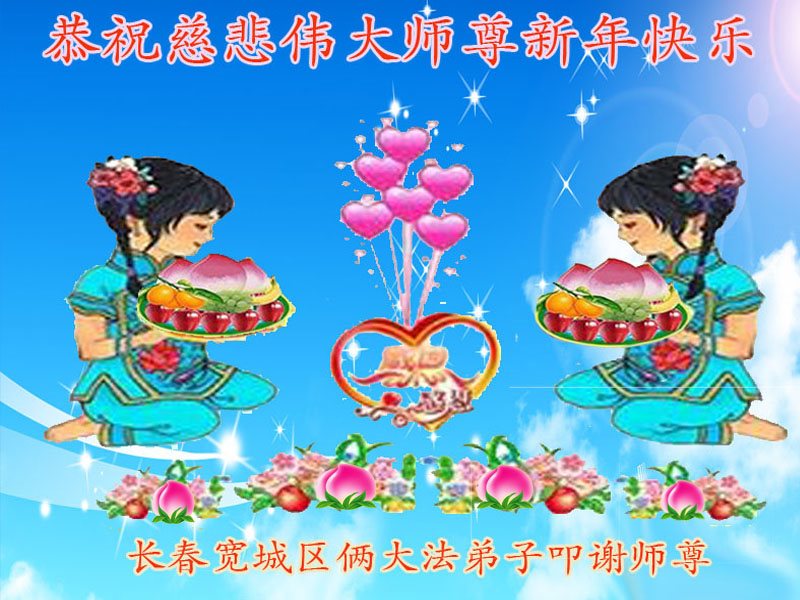 在新的一年到来之日,我们这些老年大法弟子及其家人向您慈悲伟大的师尊拜年!恭祝师父新年好!