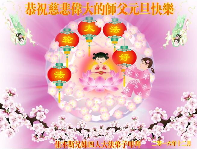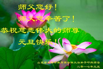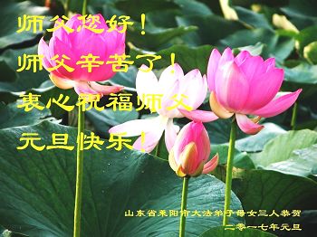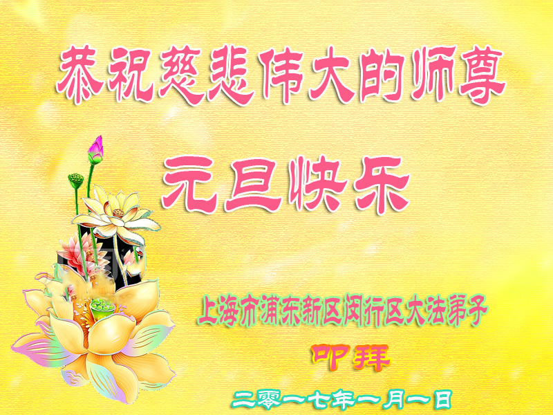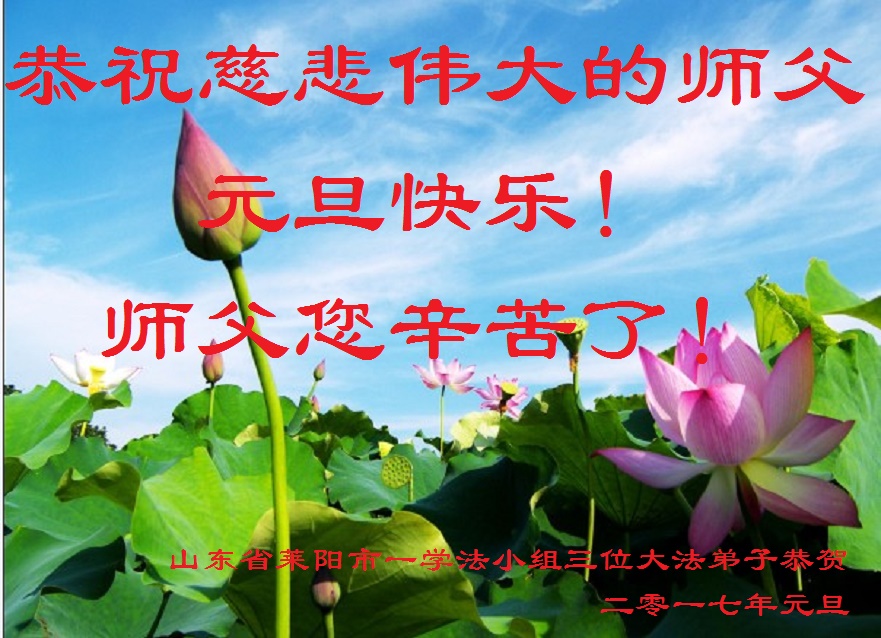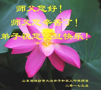 弟子在元旦佳节代表全家三代子孙向尊敬伟大的师父问好!师父辛苦了!弟子一定听师父的话,做好三件事,多学法、学好法,多救人。