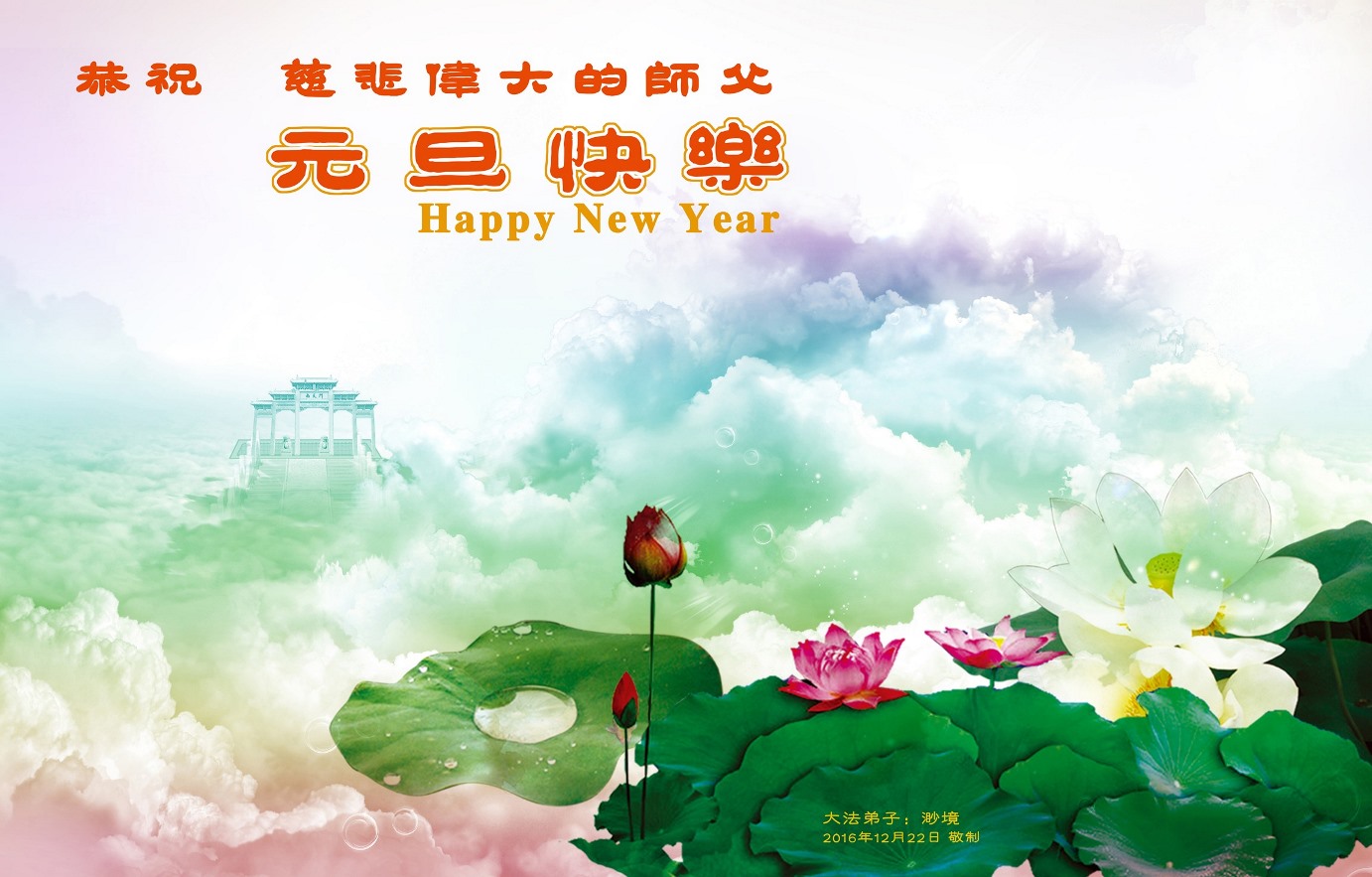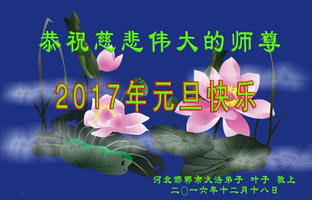 在助师正法的修炼历程中,即将迎来二零一七年新年。在此难忘的日子里,大法弟子恭祝慈悲伟大的师尊元旦快乐!师尊新年好!感恩师尊的慈悲苦度!