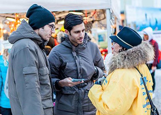 瑞典法轮功学员聚集在林雪平市中心广场,通过演示法轮功的五套功法、横幅展板、发放真相资料等形式向当地民众介绍什么是法轮功。