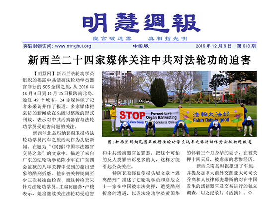 新西兰二十四家媒体关注中共对法轮功的迫害