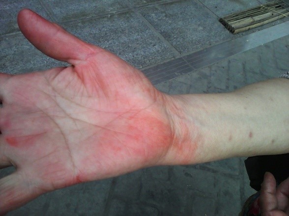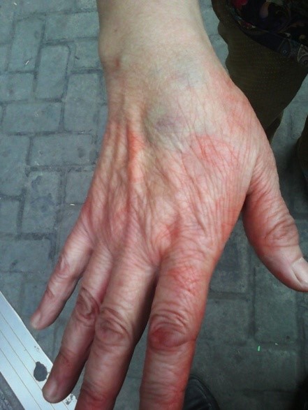 ![]() 图2:右手被强行按印泥并被掐成瘀伤 |