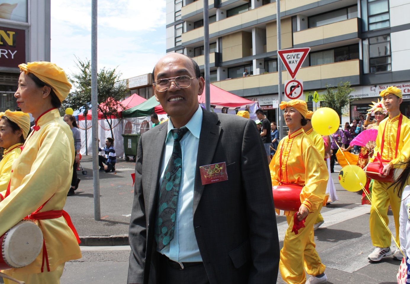 当地越南社区领袖之一南斐(Bui Nam)先生,非常欣赏法轮大法腰鼓队的表演,他说:“他们的游行队伍非常精彩,首先是明艳的黄色代表了他们的精神信仰,其次,他们的表演非常友好、非常充满活力、也非常平和。”