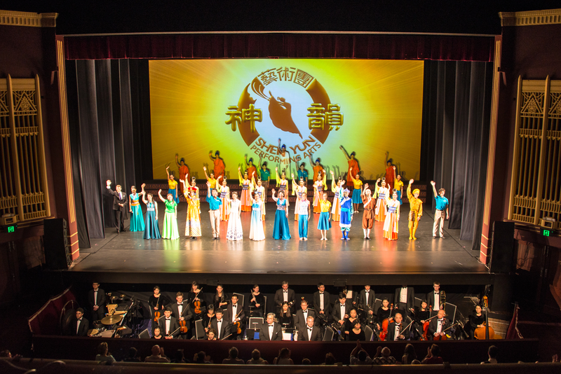 ![]() 神韵世界艺术团在澳大利亚珀斯帝王歌剧院(Regal Theater)的演出带给观众视觉、听觉和精神上多重享受和启迪。图为神韵演员演出后谢幕 |