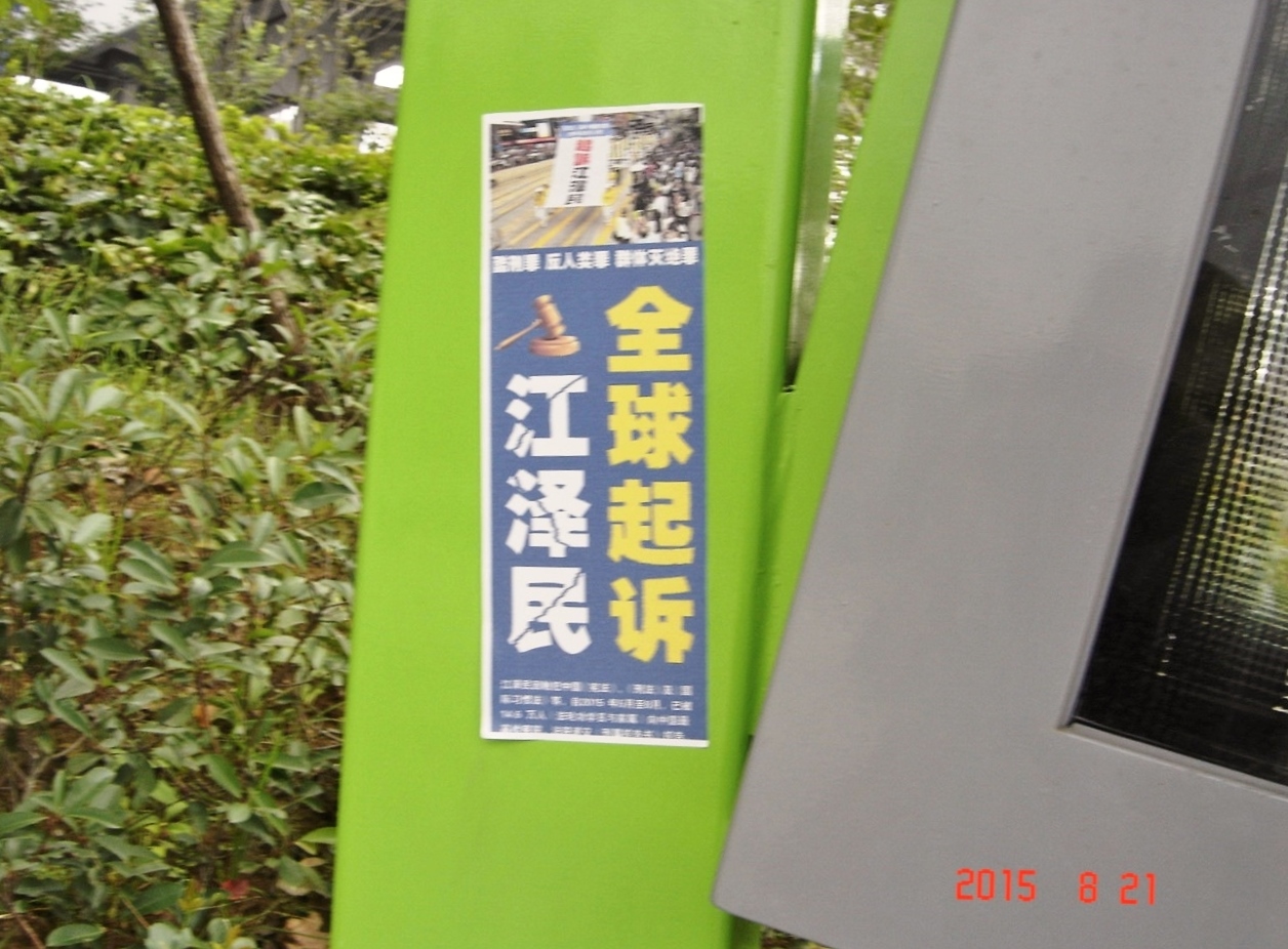 历史的今天,各地法轮功学员纷纷起诉、控告迫害元凶江泽民,要求法办江泽民。南京约七百名法轮功学员控告江魔头,南京街头出现“全球起诉江泽民”、“全球控告江泽民”等真相标语,以无声的语言传递给迷中的世人,江氏集团的罪恶即将被清算。