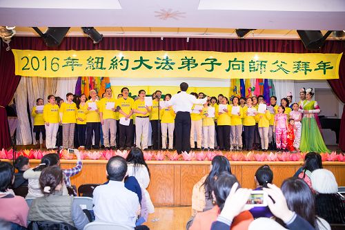 ![]() 图:中国新年将近,二零一六年一月三十日,部分纽约法轮功学员汇聚在法拉盛的台湾会馆举办庆祝活动,给李洪志师父拜年。 |