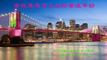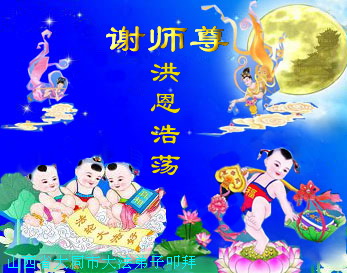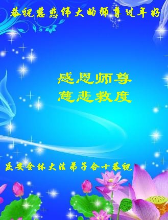在这普天同庆的日子里,大法弟子暨家属向慈悲伟大的师尊表达心中最诚挚的问候和感恩!师父辛苦了!您为弟子及众生承受太多太多,弟子们深知这延续来的时间是您给大法弟子修炼与救度众生的,众生感受着主佛的慈悲,我们一定做好三件事,形成整体,广传真相,多救众生,让师父欣慰!