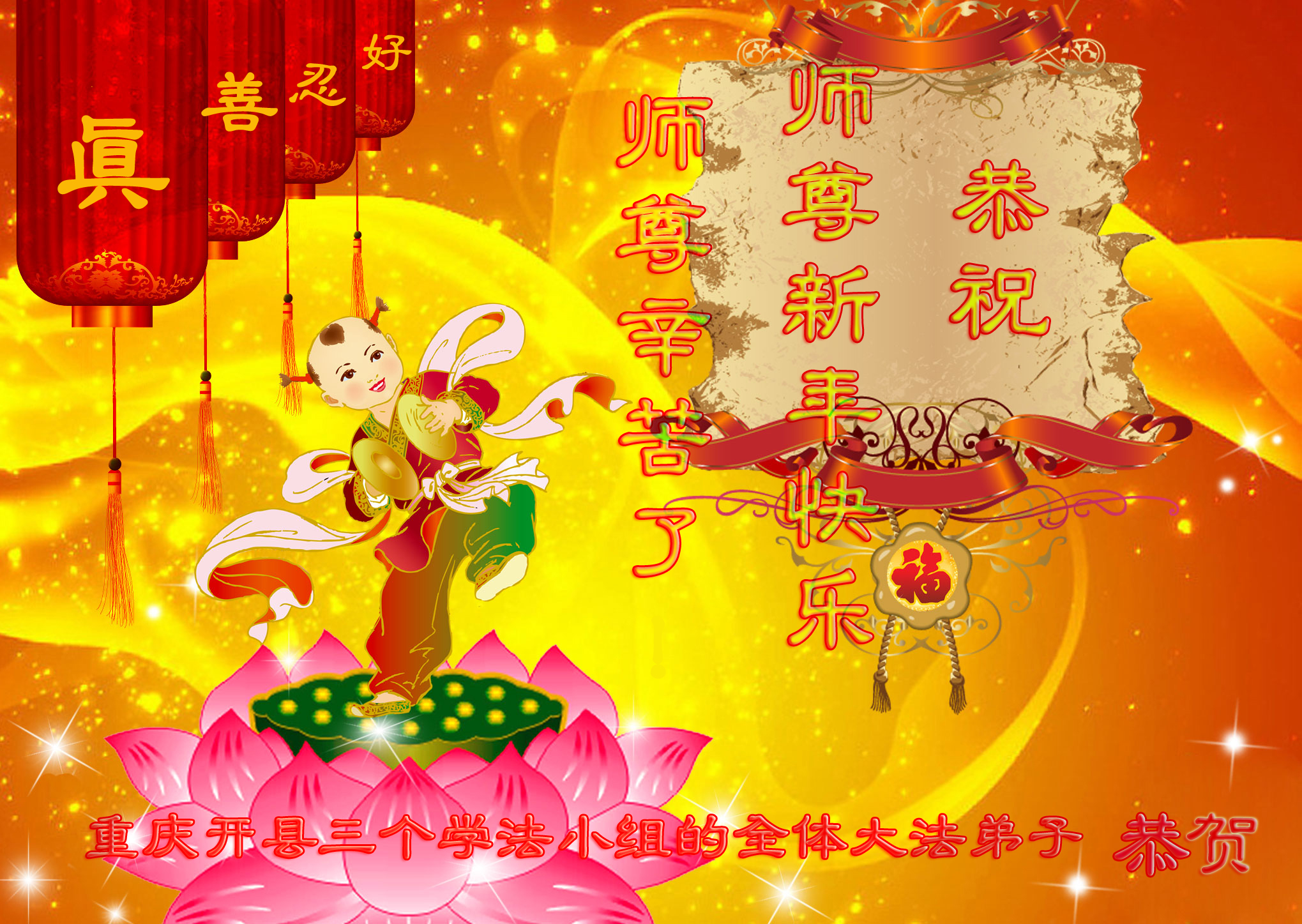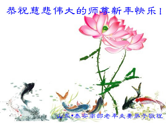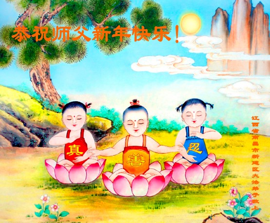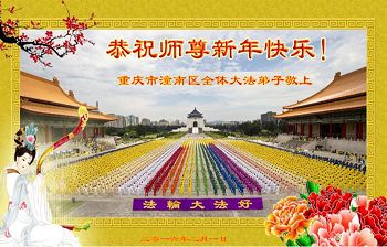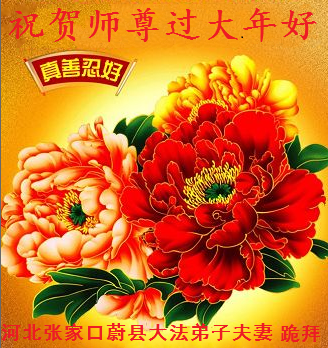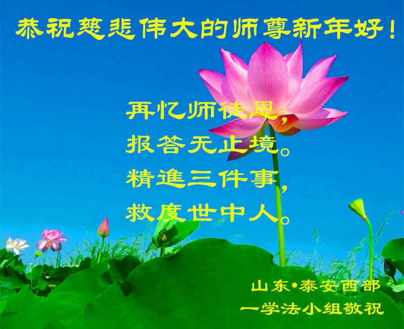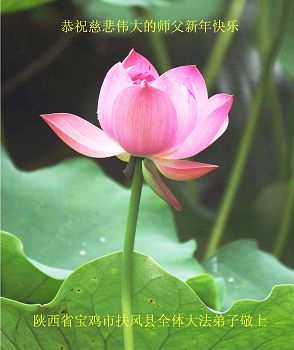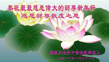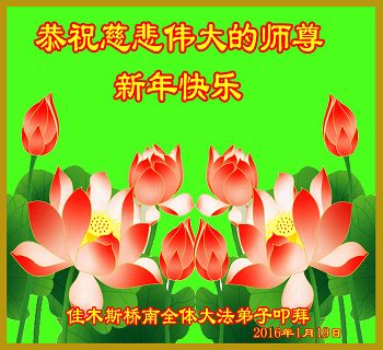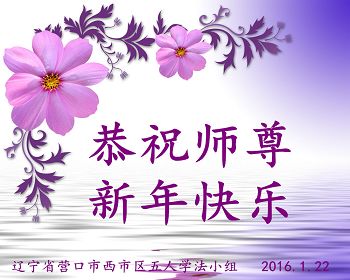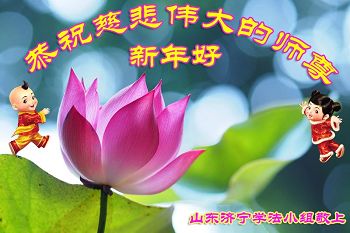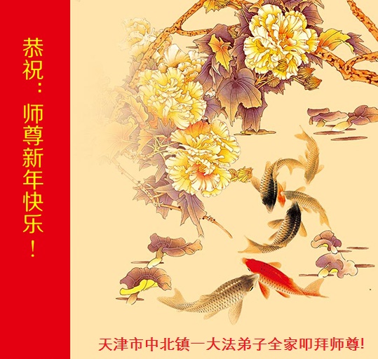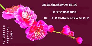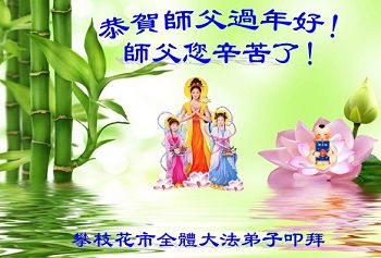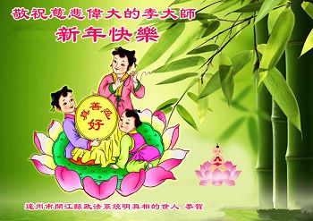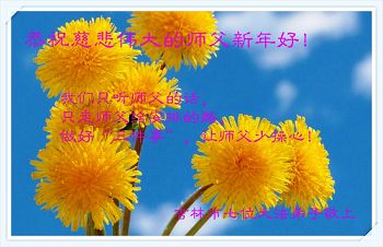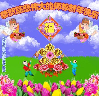 至尊无上的李大师新年好!穷尽人类的语言难以表达我们心中对李大师的无限感恩!法轮大法修炼者谨遵师命,按照真善忍的原则,遇事首先为他人着想的高贵品质,象一股清流涤荡着人类社会的一切邪恶!我们在此真心奉劝那些还被中共邪党蒙骗的世人,珍惜每一次法轮功弟子给你们的机会,明白法轮功真相,相信“法轮大法好”、“真、善、忍好”,给自己选择一个美好的未来!