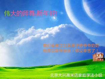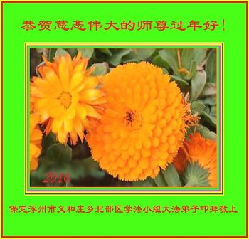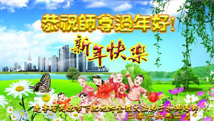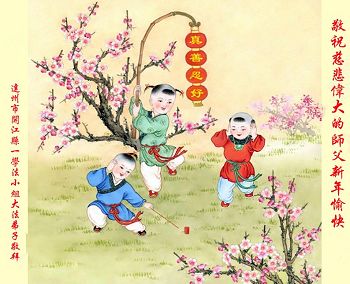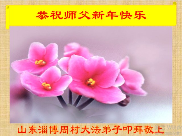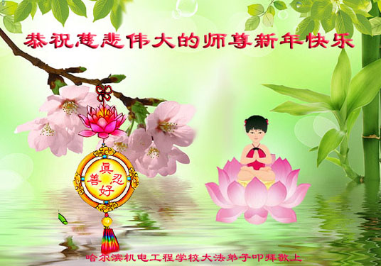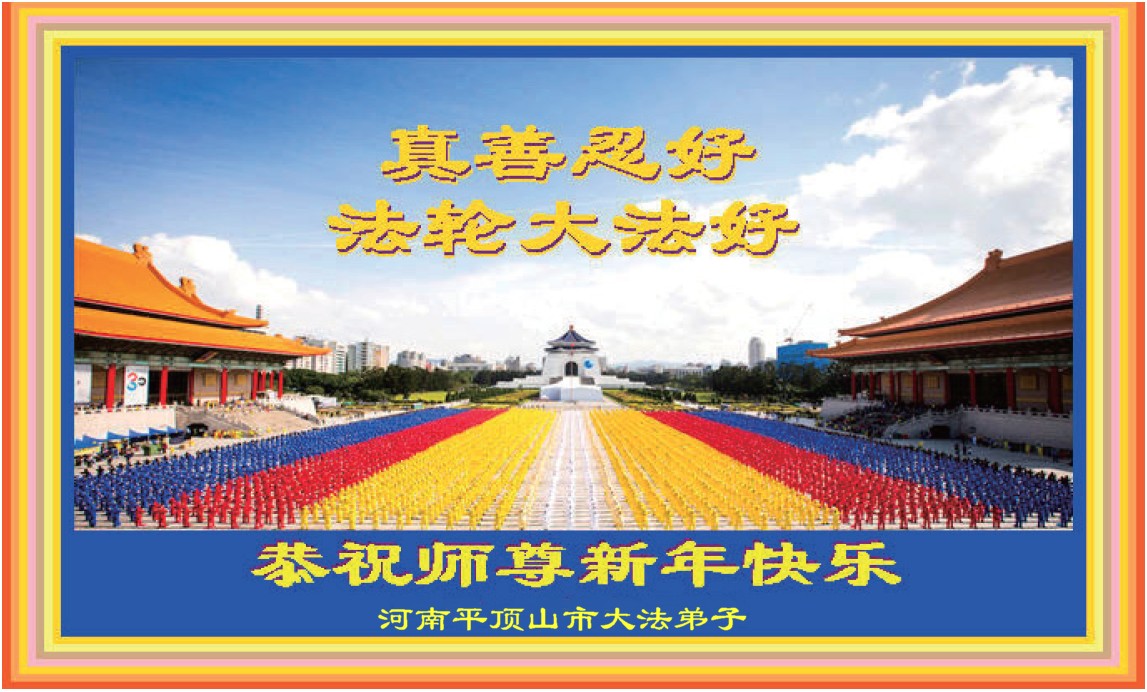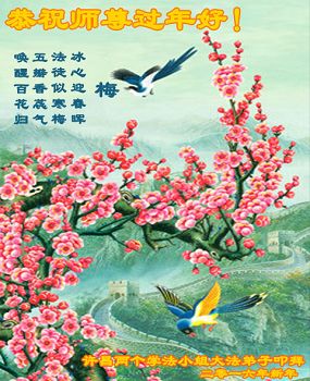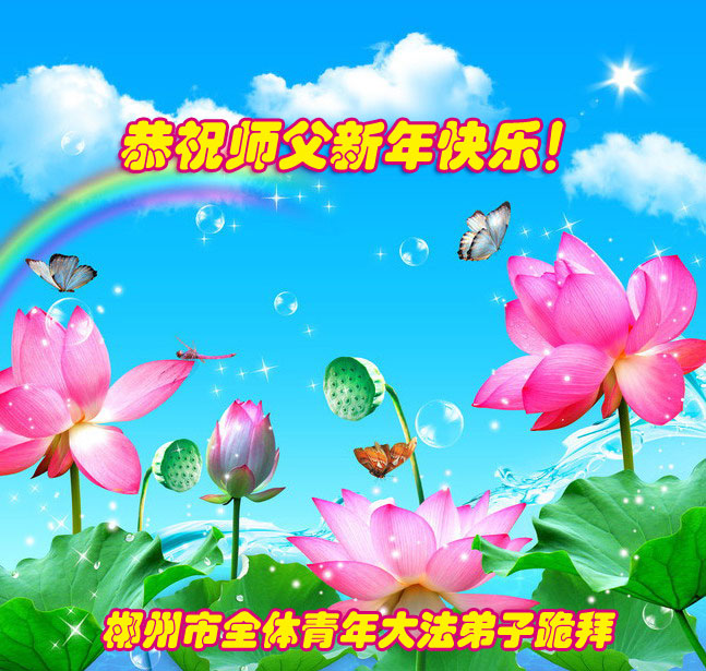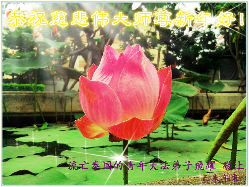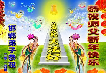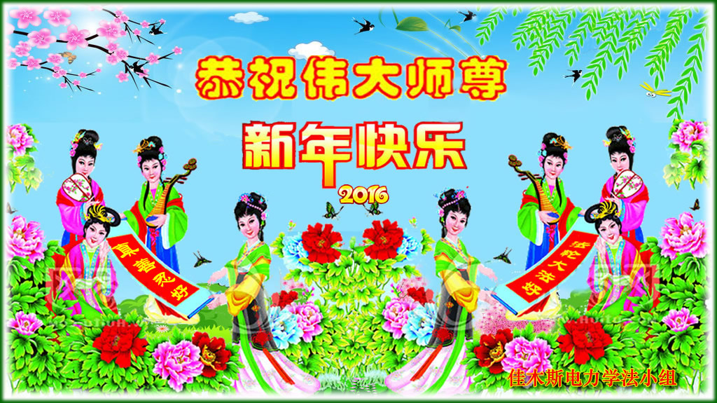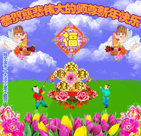 至尊无上的李大师新年好!穷尽人类的语言难以表达我们心中对李大师的无限感恩!法轮大法修炼者谨遵师命,按照真善忍的原则,遇事首先为他人着想的高贵品质,象一股清流涤荡着人类社会的一切邪恶!我们在此真心奉劝那些还被中共邪党蒙骗的世人,珍惜每一次法轮功弟子给你们的机会,明白法轮功真相,相信“法轮大法好”、“真、善、忍好”,给自己选择一个美好的未来!