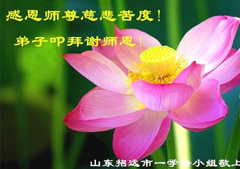 尊敬的李大师您好!我们衷心感谢您对我们的慈悲救度!现在的中国社会,世风日下,道德败坏,人们想做点好事都难!但是我们从法轮大法修炼者身上,看到了光明和未来,也唯有法轮大法才能救世!李大师的救度大恩我们无以为报,但是我们一定尽自己所能,将法轮大法的美好福音带给更多的人,让他们的心灵也得到救赎,给自己一个美好光明的未来!
