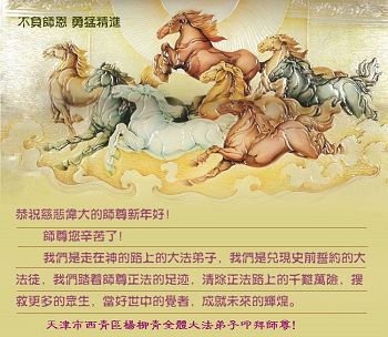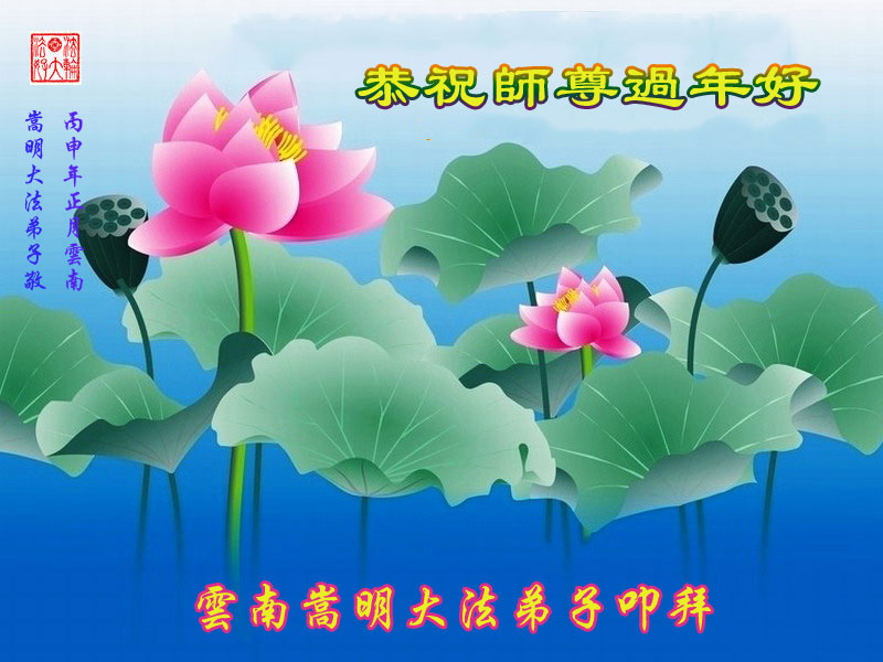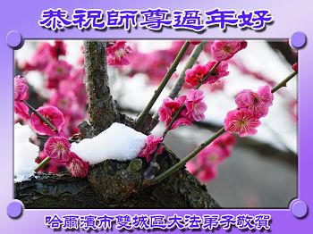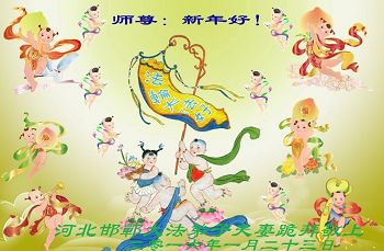委托同事向大法师父表达敬意,并恭祝大法师父新年好!