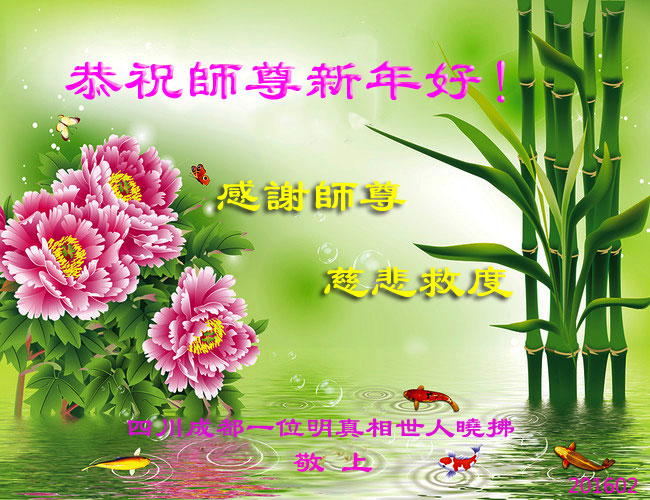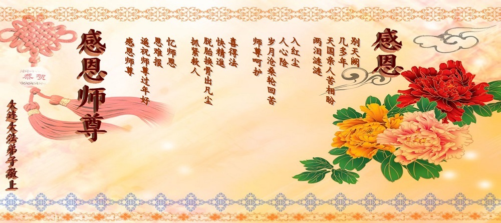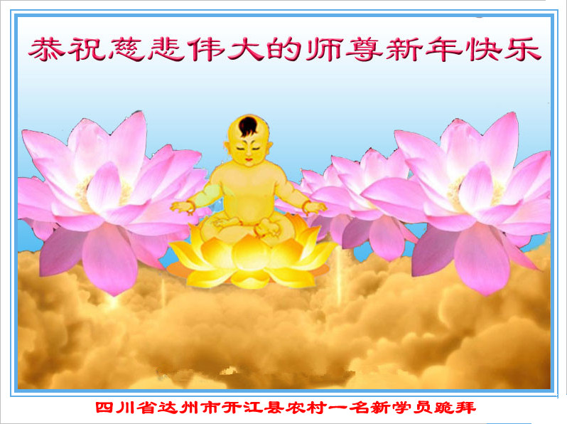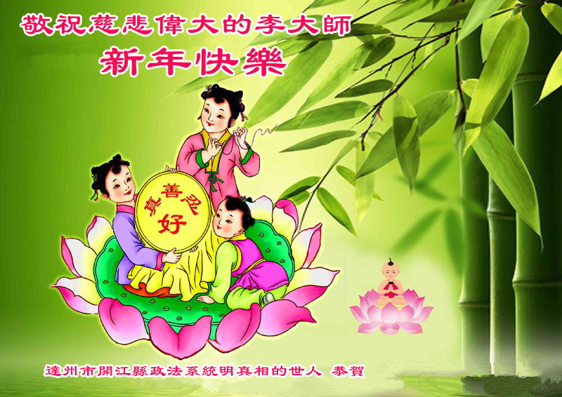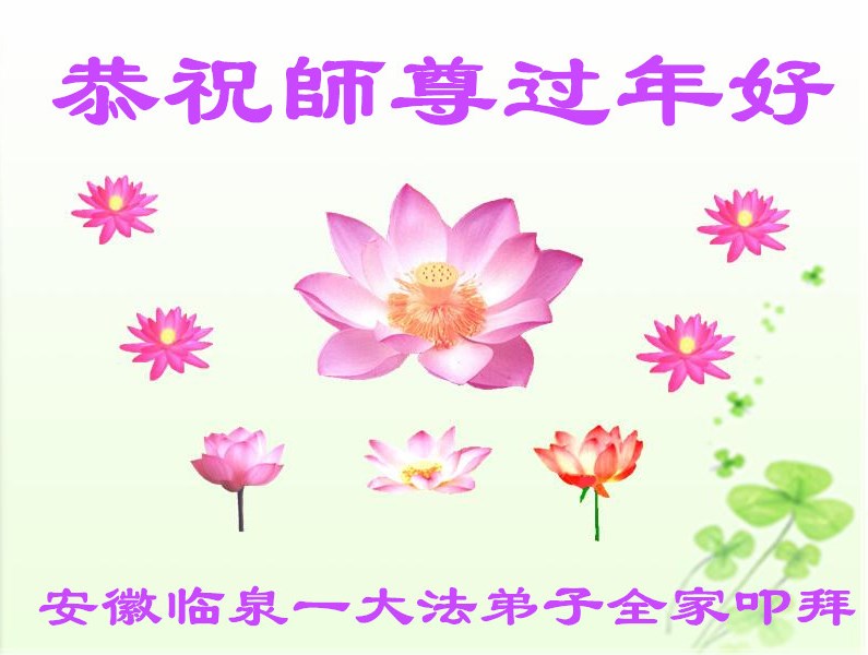 尊敬的李大师您好,新年到来,我们代表亲朋好友及明白大法真相的世人,向慈悲的李大师致以诚挚的问候!在此,我们呼吁所有还受中共邪党蒙骗的世人,赶快“三退保平安”,珍惜神佛的慈悲,为自己选择美好的未来!得救的生命跪谢李大师!