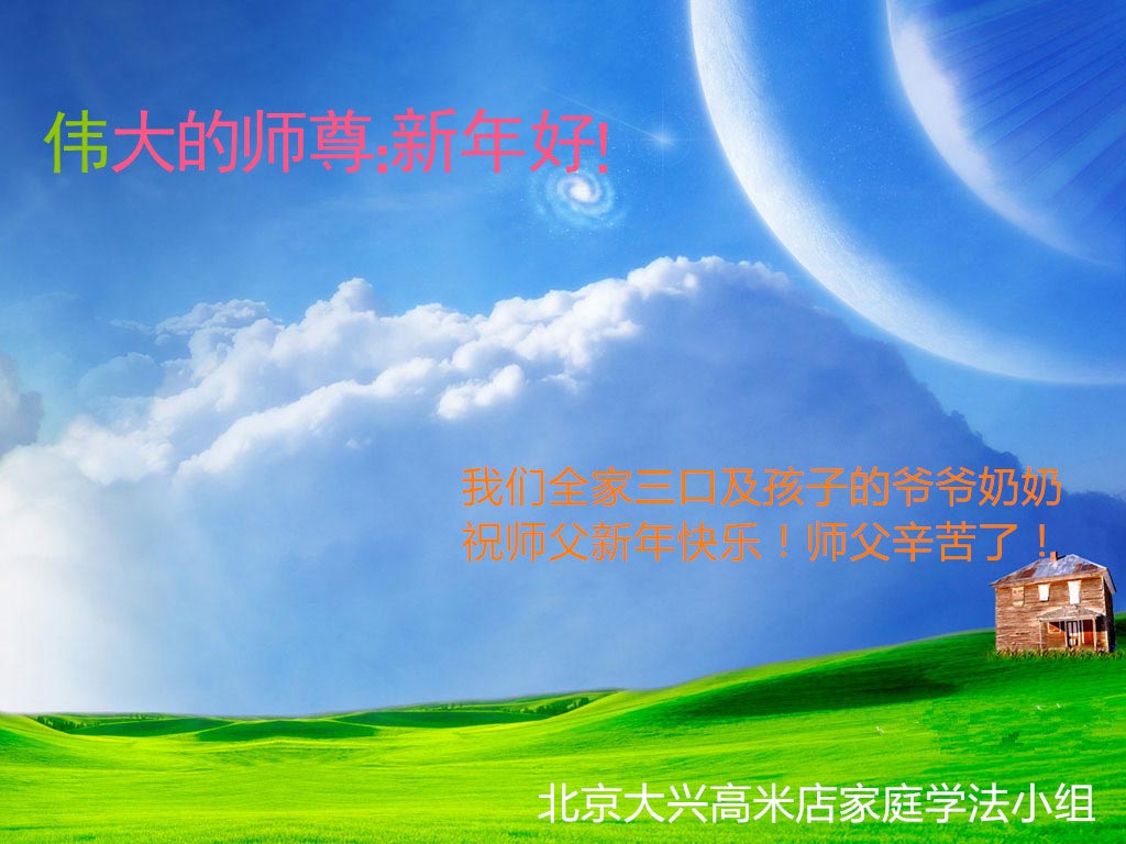 在这里我代表全家给李大师拜年,祝李大师新年快乐!
