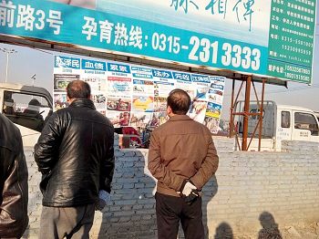 河北唐山地区诉江展板吸引路人观看