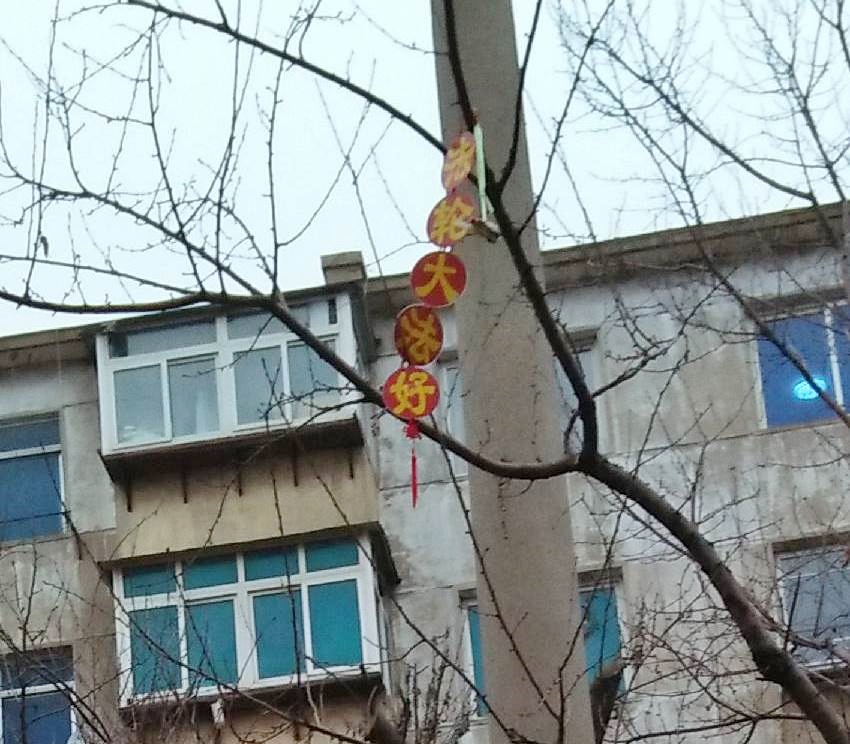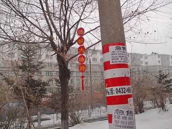 • 辽宁鞍山市过年期间大街小巷的真相展板和挂件