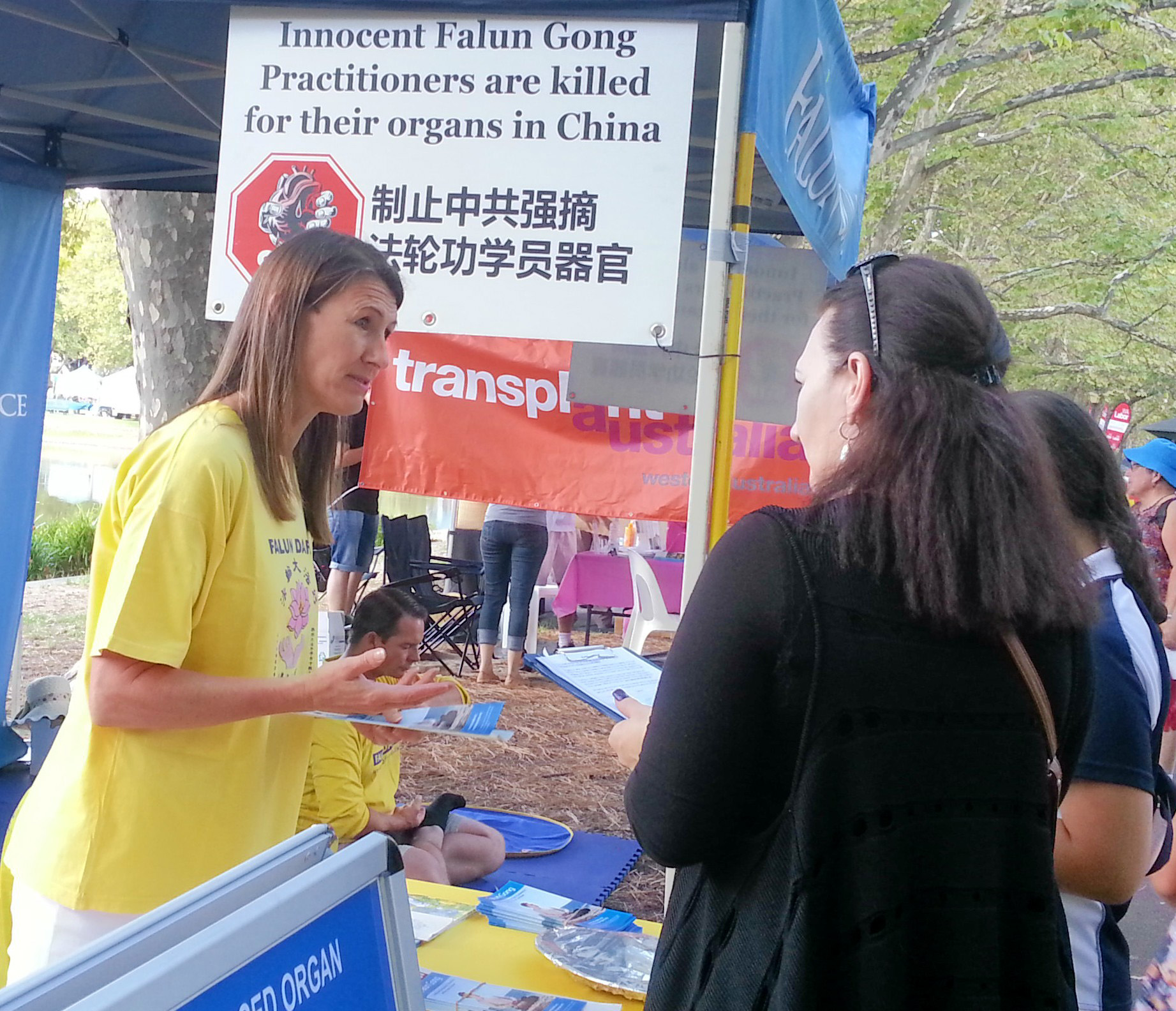 ![]() 西澳多元文化节上,人们签名谴责中共活摘法轮功学员器官 |
