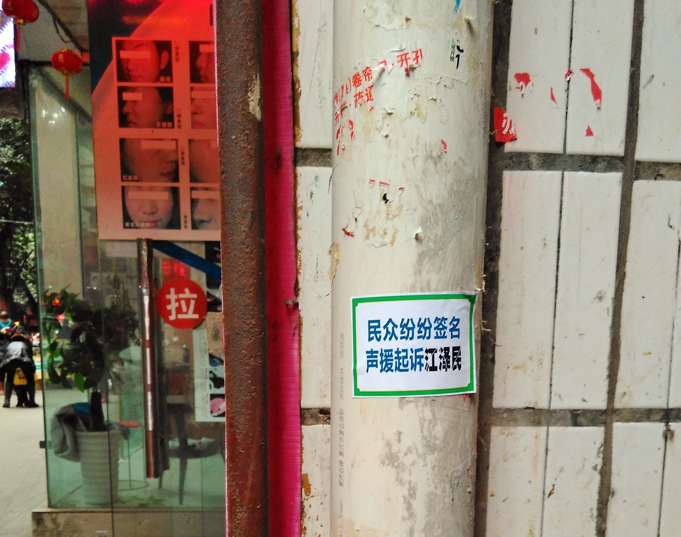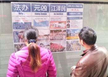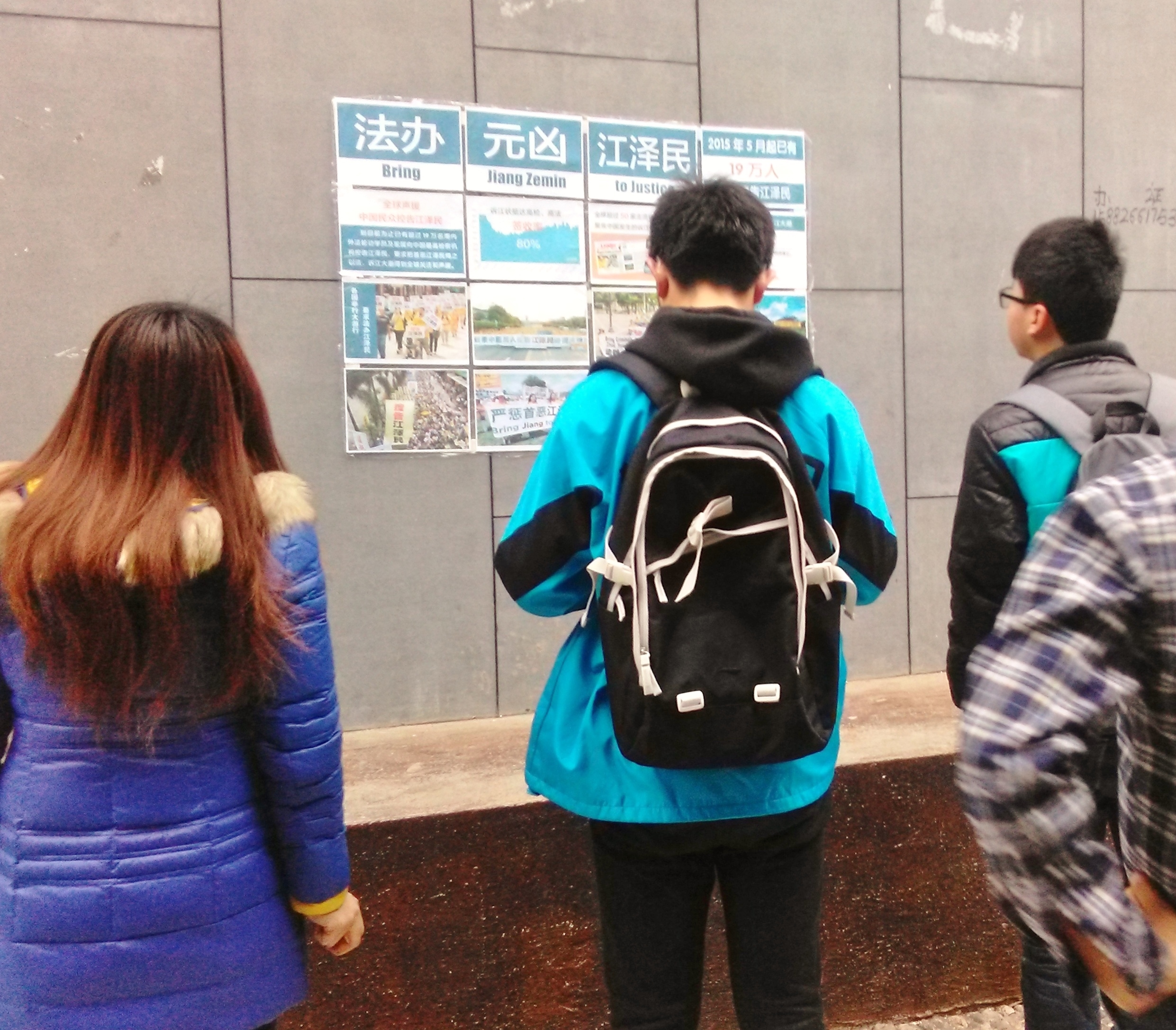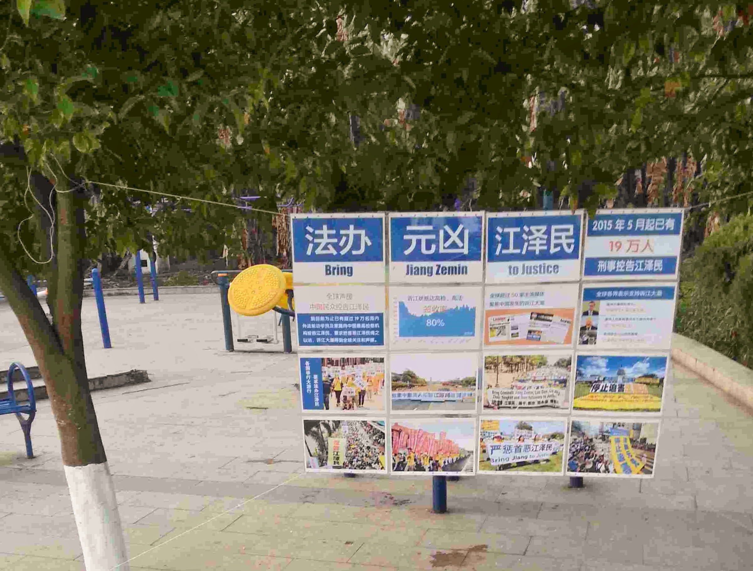 通讯员四川报道)二零一六年二月、三月,四川南充法轮功学员在各处张贴的控告江泽民(诉江)展板和真相粘贴,人们看见后奔走相告,说快去看诉江展板,好大的展板哦,还有好多人拍照,他们说,快拍照,发到网上去……
