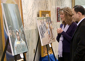 二零一六年三月十四、十五日,美东法轮大法佛学会在纽约州首府奥尔巴尼的州立法院大楼内,再次举办了“真善忍”国际美展。