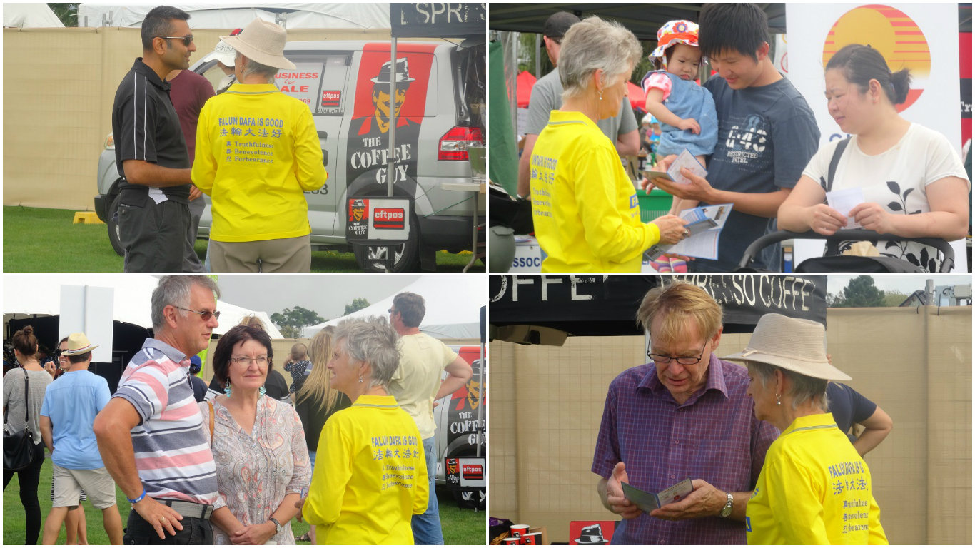 当地居民艾米丽(Emily Coopur)来到展台前,和法轮功学员聊了很长时间。她过去不知道法轮功在中国受迫害的情况,当了解到迫害情况,特别是江泽民及中共沆瀣一气,活摘法轮功学员器官的暴行时,感到非常震惊,并对此邪恶行径表示愤慨。她说:“我们不能沉默,澳大利亚政府应该讲出来,制止罪恶。大家都应该来签名反迫害。”最后她还索取了各种真相资料,包括英文版的《九评》DVD,表示回去要好好了解,认清中共的邪恶本质,要为法轮功做点什么。