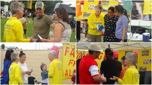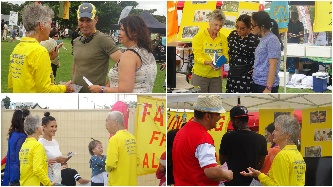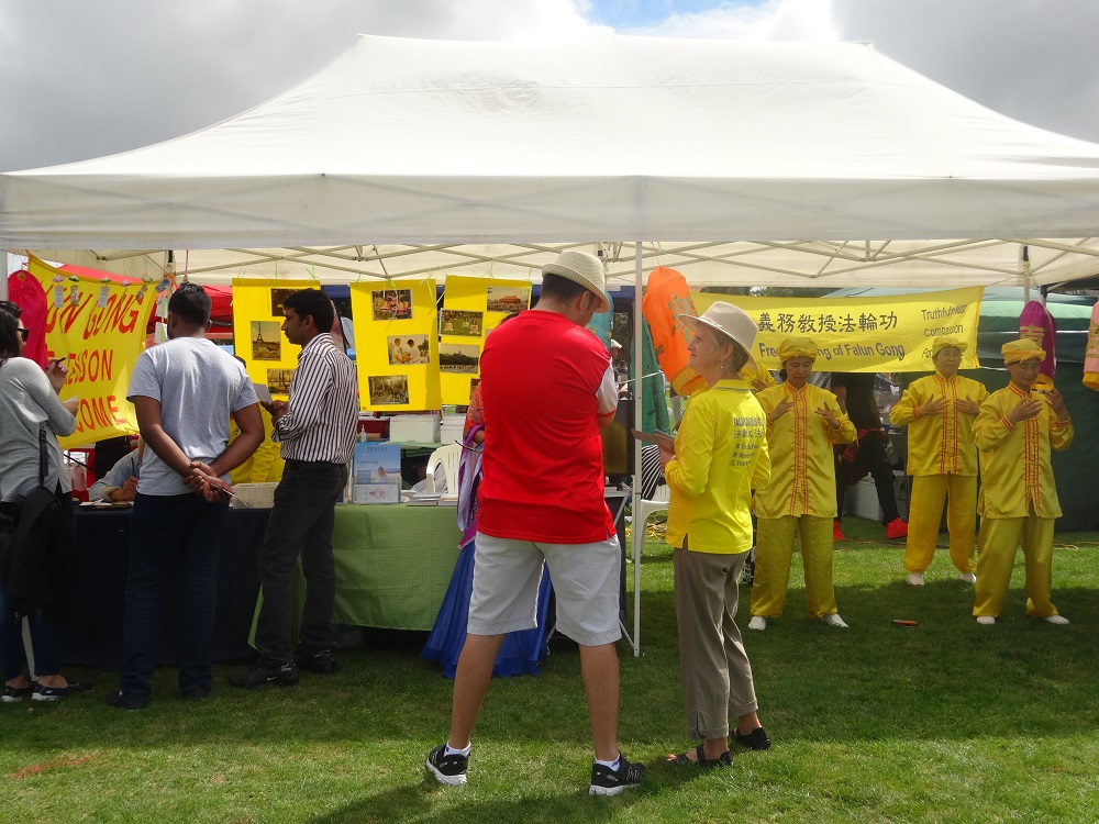 【明慧网二零一六年三月二十一日】(新西兰明慧记者张勤奥克兰报导)二零一六年三月二十日,奥克兰国际文化节在中区的芒特•罗思科尔(Mt Roskill)隆重登场。该文化节由奥克兰市政局精心筹备了数年,许多民族团体来此设摊位,向人们介绍自己民族的文化。新西兰的部份法轮功学员也在这里设摊位,向民众介绍法轮功,这个来自东方的以“真、善、忍”为准则的古老修炼法门。