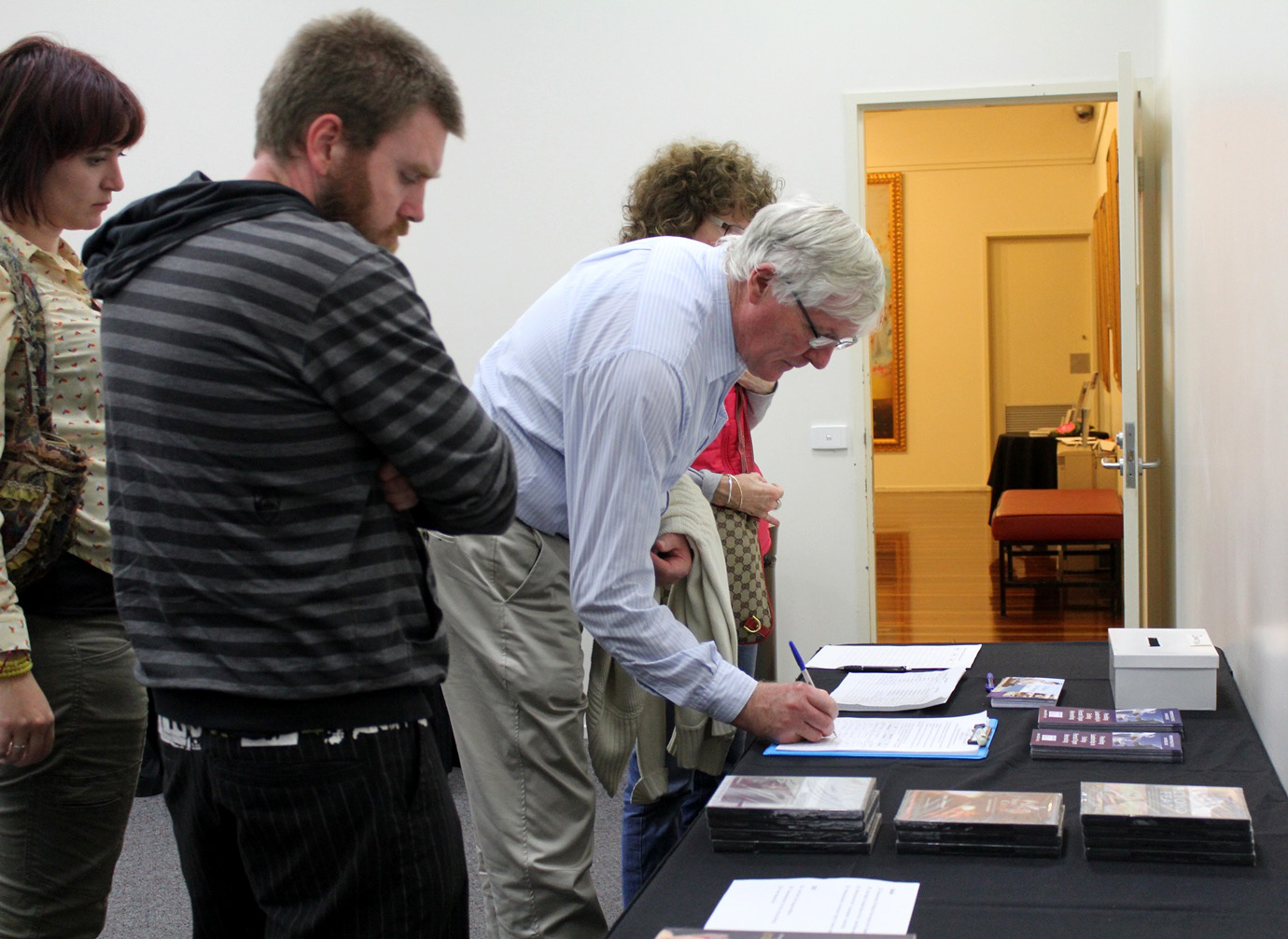 ![]() 纪录片放映结束后,观众排队在呼吁澳洲联邦政府帮助制止活摘罪恶的请愿书上签名 |