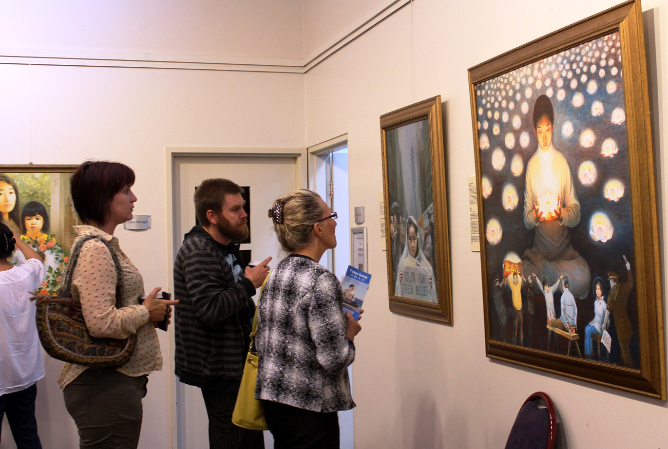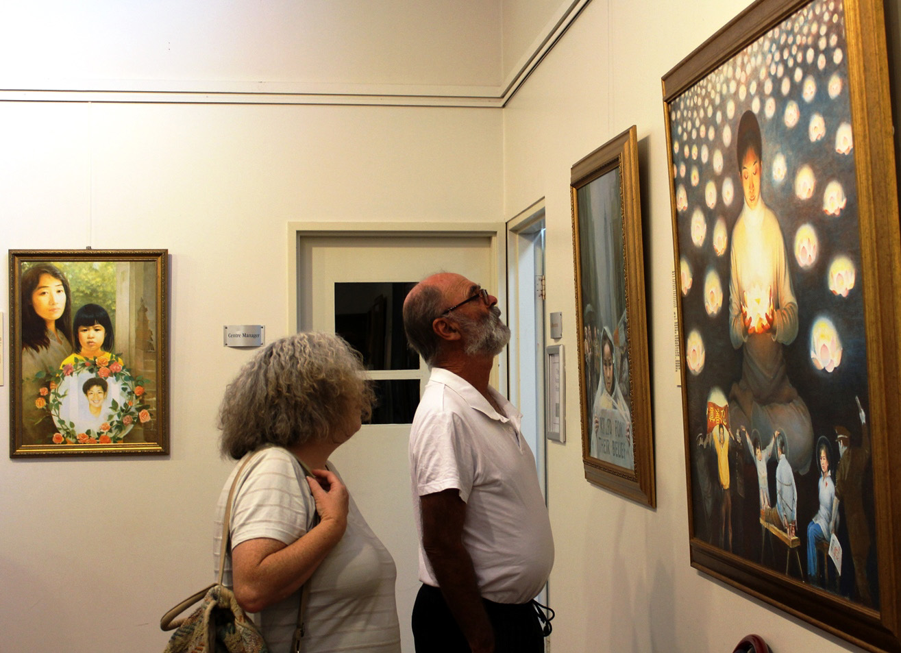 在澳洲邮政局工作的艾伦(Alan)和妻子从郊区赶来,他说:“我几年前对中国发生的法轮功受迫害听说过一点,但画展告诉观众更多,以艺术的形式展现这一切,感人至深,真是不虚此行。”