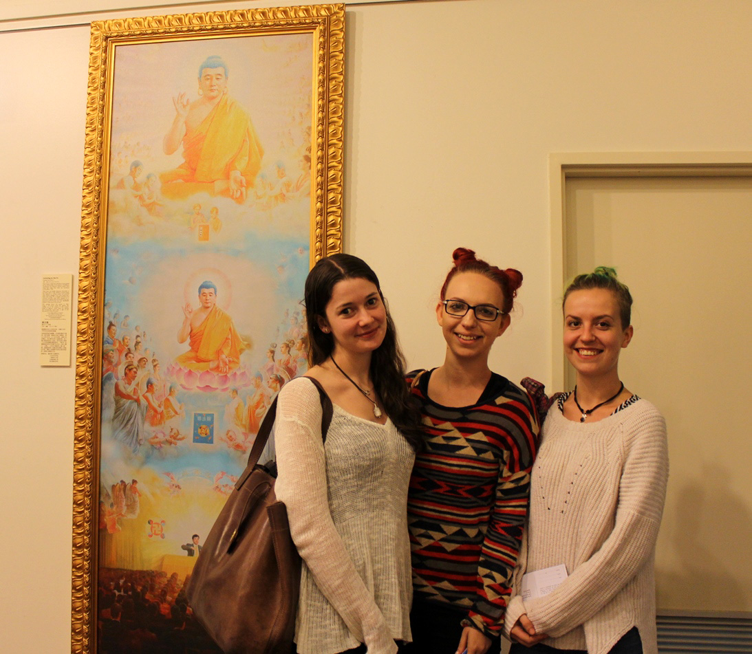 ![]() 从左至右:瑞贝卡(Rebacca),佐依(Zoe)和玛克辛(Maxine)结伴观看了纪录片以及真善忍画展 |