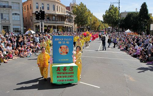 墨尔本法轮大法团体连续十六年受邀参加游行,当天有两辆精心装扮的花车和色彩各异的表演方阵向世人展示了法轮大法的美好。