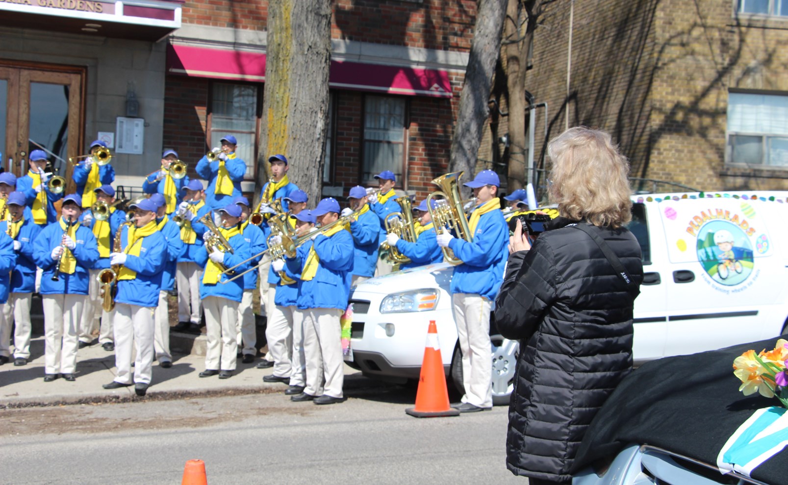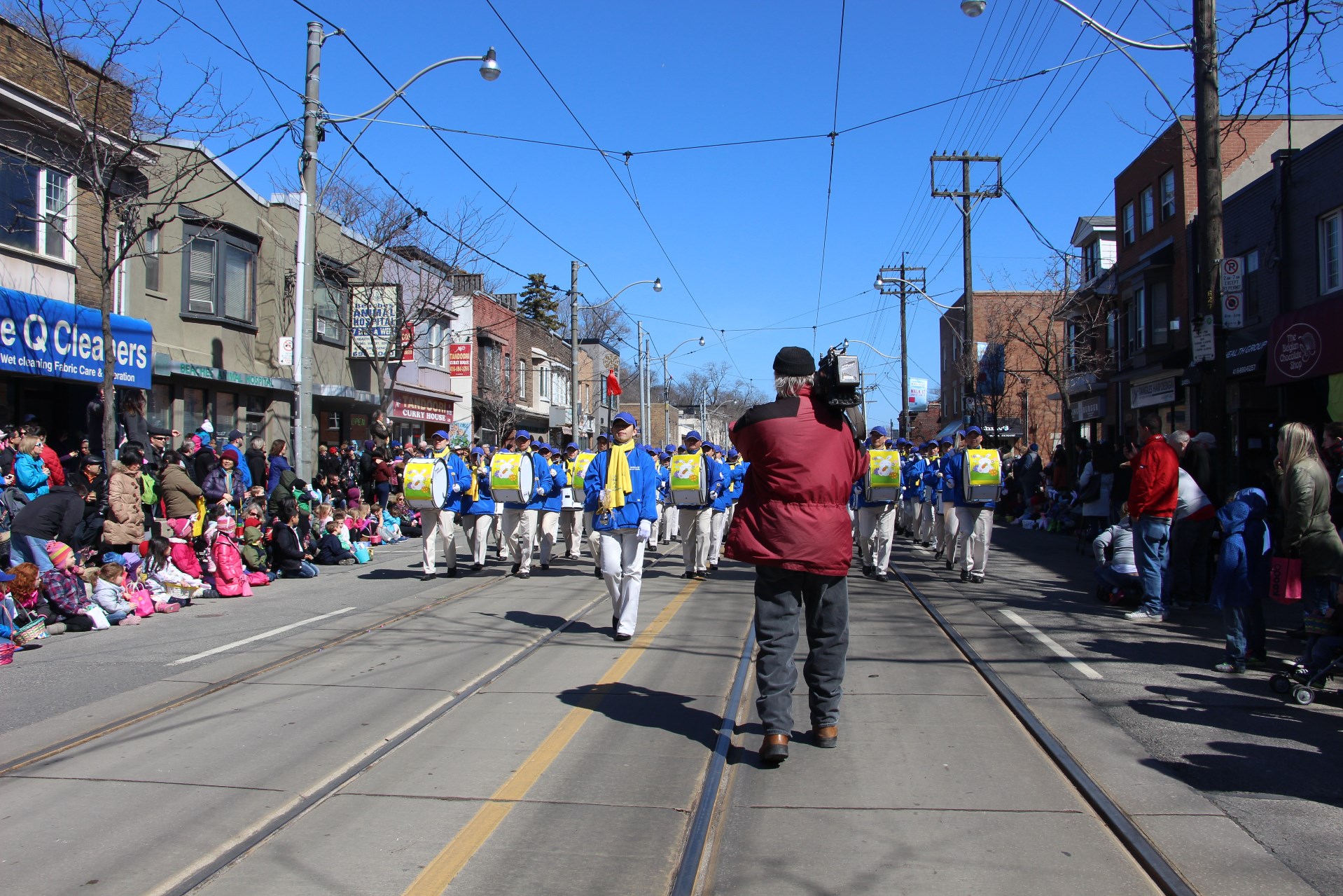 【明慧网二零一六年三月二十九日】(明慧记者章韵加拿大多伦多报道)二零一六年三月二十七日,由一百多名法轮功学员组成的多伦多天国乐团应邀参加了多伦多一年一度的复活节游行,今年是第五十届多伦多复活节游行,据媒体报道,大约有五万观众观看了当天的游行。有八十八支队伍参加了游行,天国乐团是唯一的亚裔团队。多个本地媒体在现场报道游行盛况,包括Rogers TV在现场直播。