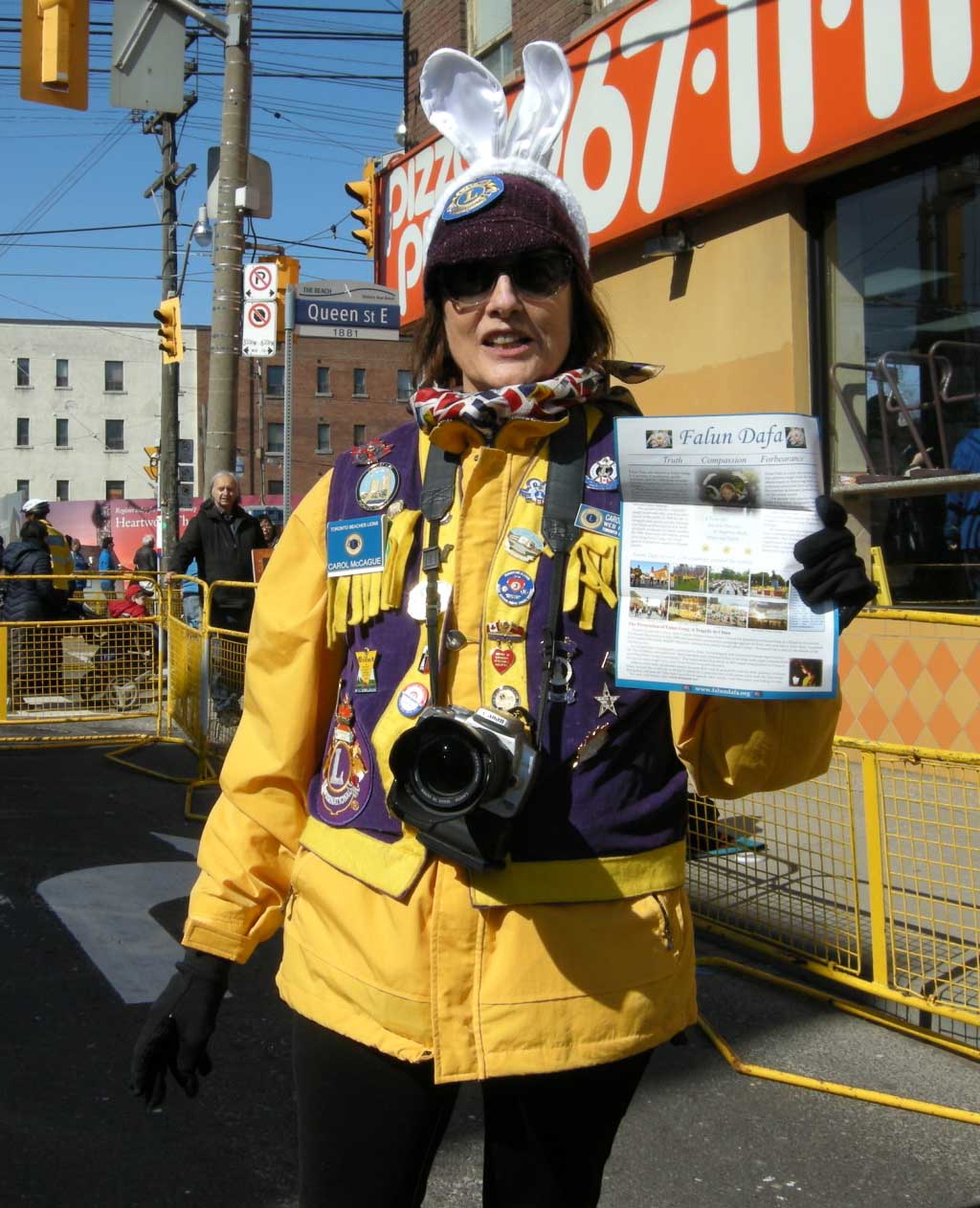 ![]() 图9:游行主办方负责人之一的Carol Mccague说:“我们真的很喜欢天国乐团,希望腰鼓队明年也能来参加。” |