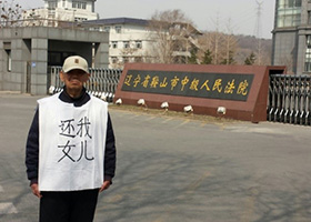 八旬老父到鞍山市中级法院为女儿喊冤(图)