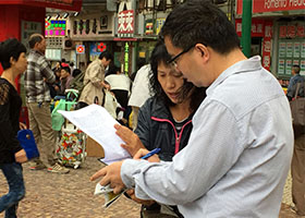 自二零一五年八月起,澳门法轮功学员在澳门世界遗产景点玫瑰堂前地、大三巴等地征集签名声援控告江泽民,得到了澳门各界市民的支持。
