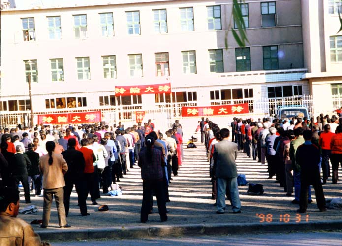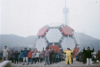 ![]() 一九九八年五月,沈阳万名法轮功学员集体炼功 |