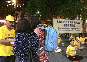 四月二十三日下午至晚间,澳洲昆士兰法轮功学员在布里斯本市中心的布里斯本广场举办了纪念“四•二五”和平上访十七周年的活动。