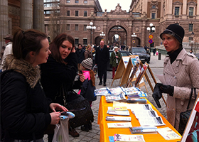 瑞典法轮功学员纪念“四二五” 呼吁法办元凶(图)