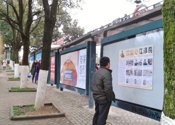 贵州、吉林、四川、辽宁、黑龙江、河北以及上海等地多处可见揭露江泽民和中共迫害法轮功的真相图片,吸引路人观看。