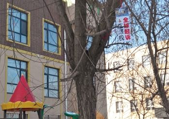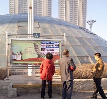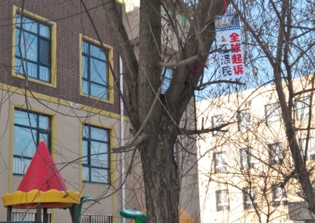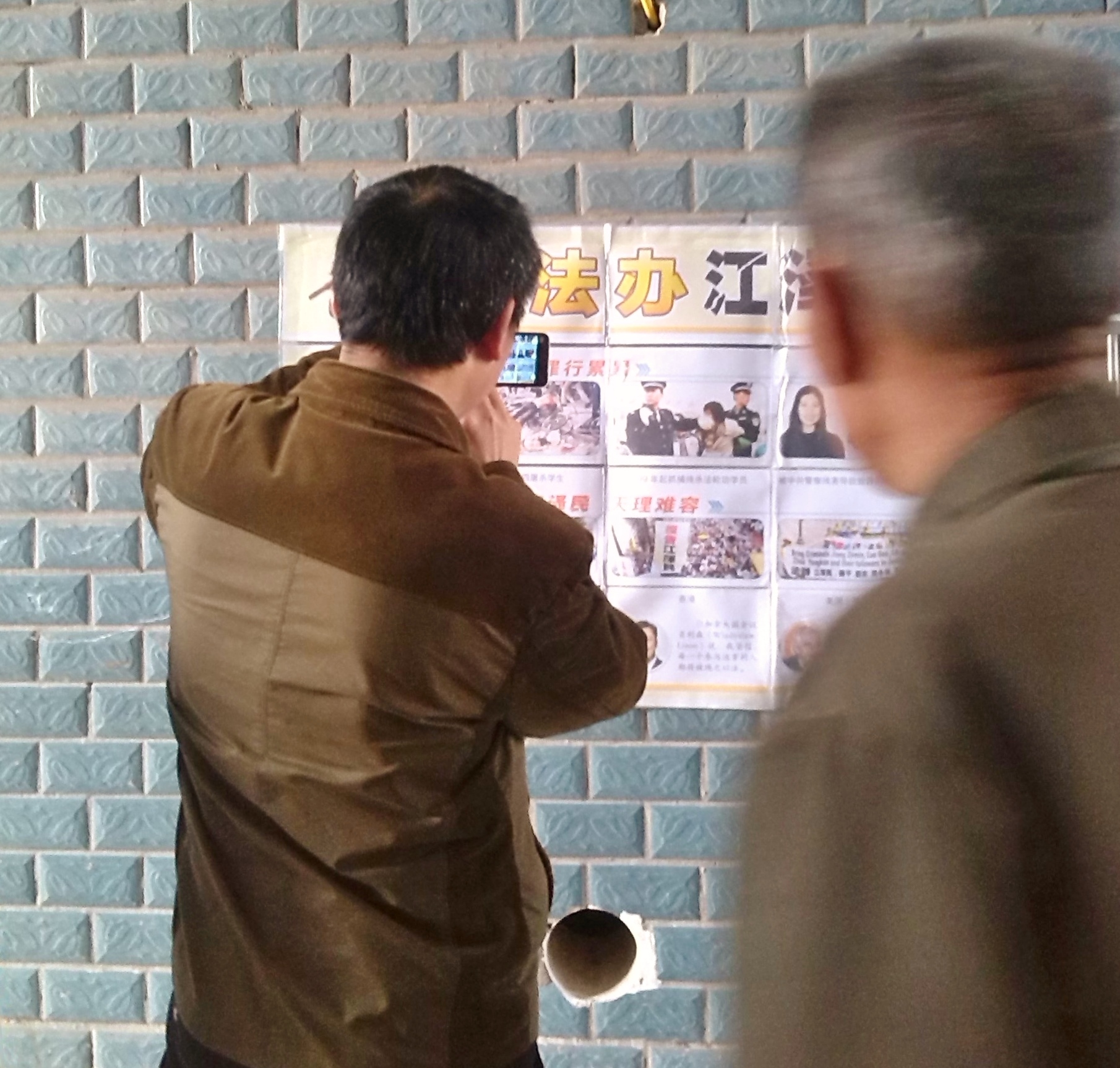 • 黑龙江省某地居民区的诉江展板吸引路人观看
