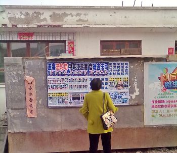 黑龙江省某地居民区的诉江展板吸引路人观看
