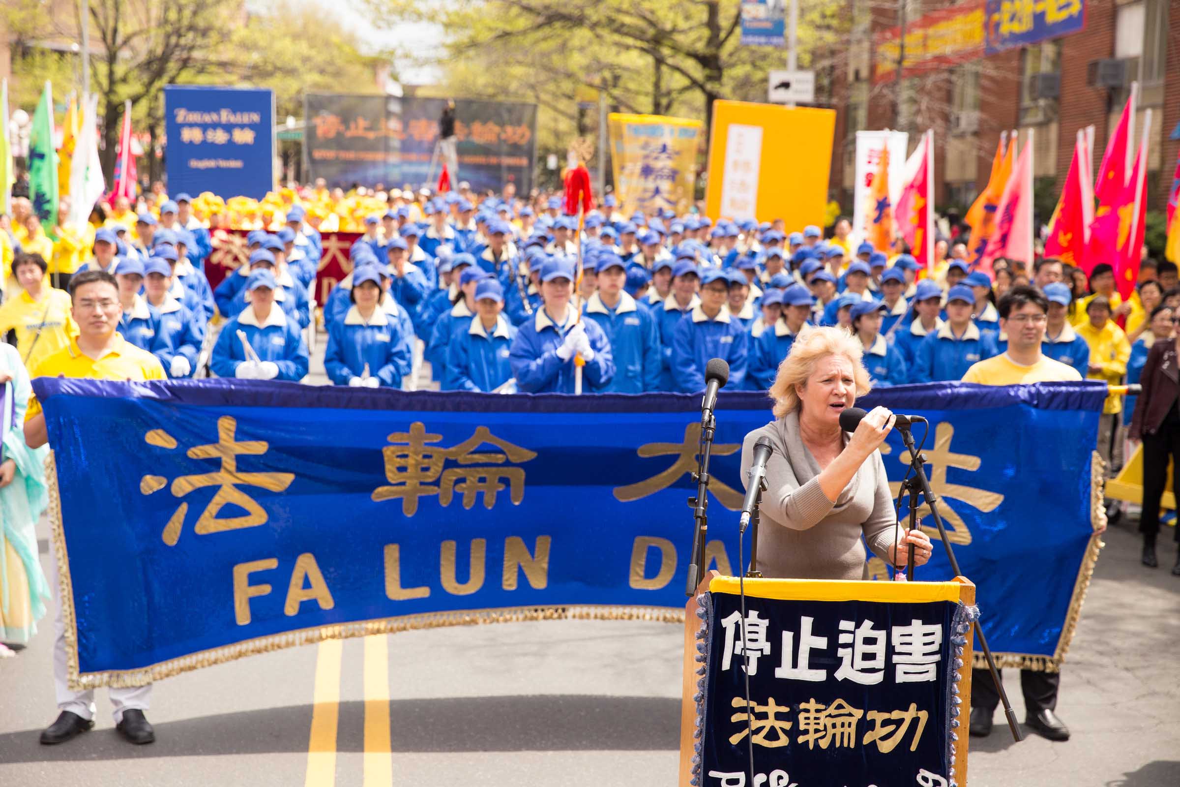 曾多次参加纽约四二五集会游行的法拉盛社区领袖玛莎(Martha Flores-Vazquez)今年再度参加,她在发言中表示:自己感到“非常骄傲”。她非常理解法轮功学员,愿为法轮功学员“继续发声”。