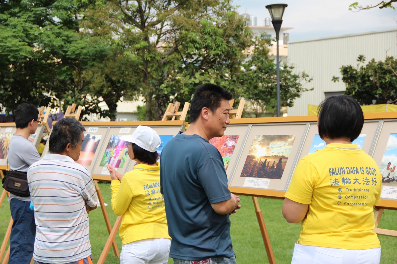【明慧网二零一六年四月二十六日】(明慧记者夏昀台湾台中采访报道)为纪念四二五上万名法轮功学员和平上访十七周年,台湾中部法轮功学员于二零一六年四月二十四日,在台中市丰原区葫芦墩公园集会,以功法演示及图片展,向人们展示法轮功学员一如既往的和平反迫害诉求。