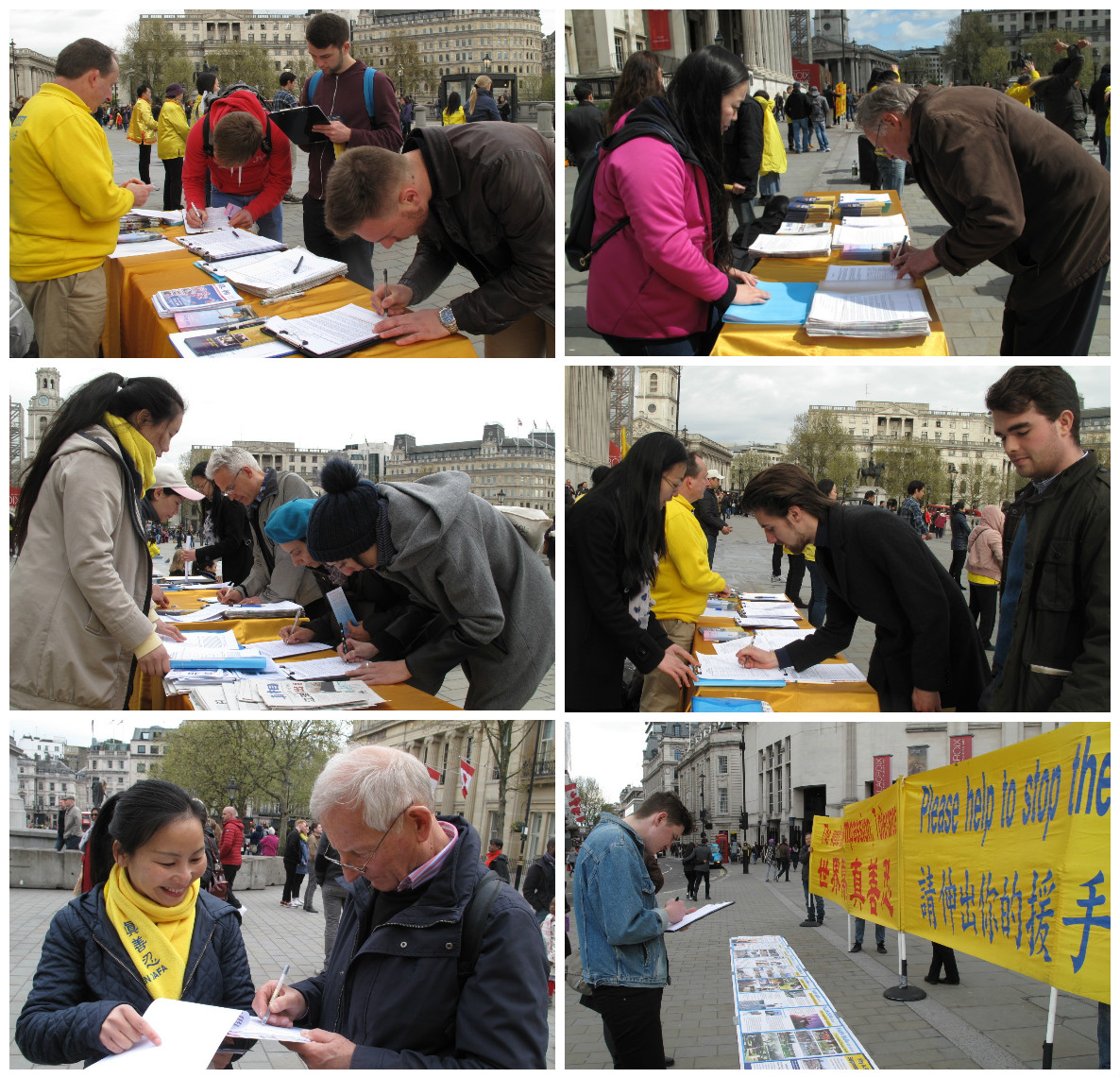 还有的民众在了解真相,特别是中共活摘法轮功学员器官罪行后立即表示要去传播真相、尽快制止迫害。在UCL工作的年轻人杰克(Jack)和他的一位朋友在反迫害征签簿签名后表示:“这(活摘器官)是最野蛮的行为。这和我们每一个人都相关。我要让每一个人都知道这事儿。”