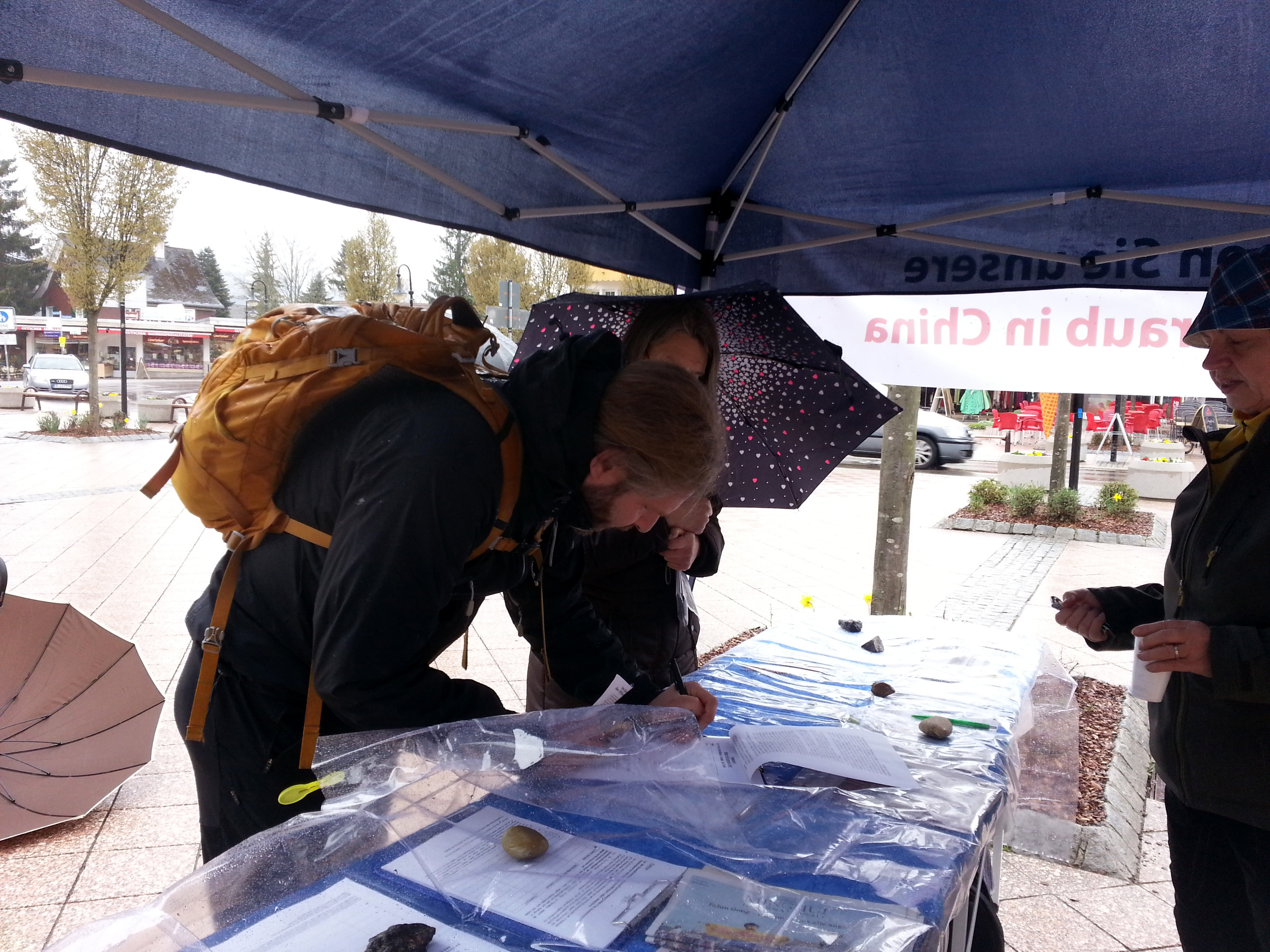 ![]() 图1:纪念四二五,德国南部黑森林地区的法轮功学员在缇缇湖风景区举办信息日,传播法轮功的真相。图为游客们正在观看真相图片。 |
