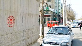 备注:这种墙体大章方式,借鉴了剪纸的样式,图文并茂,形象逼真且优美,发挥了户外标图的作用,做起来相对而言更安全、高效、持久。采取了图形和文字结合,图案化的设计。图案部分采用线条形式的图案,选取图片后用PS将它做成线条化、白描或图章,突出边线等方式,达到方便雕刻即可。