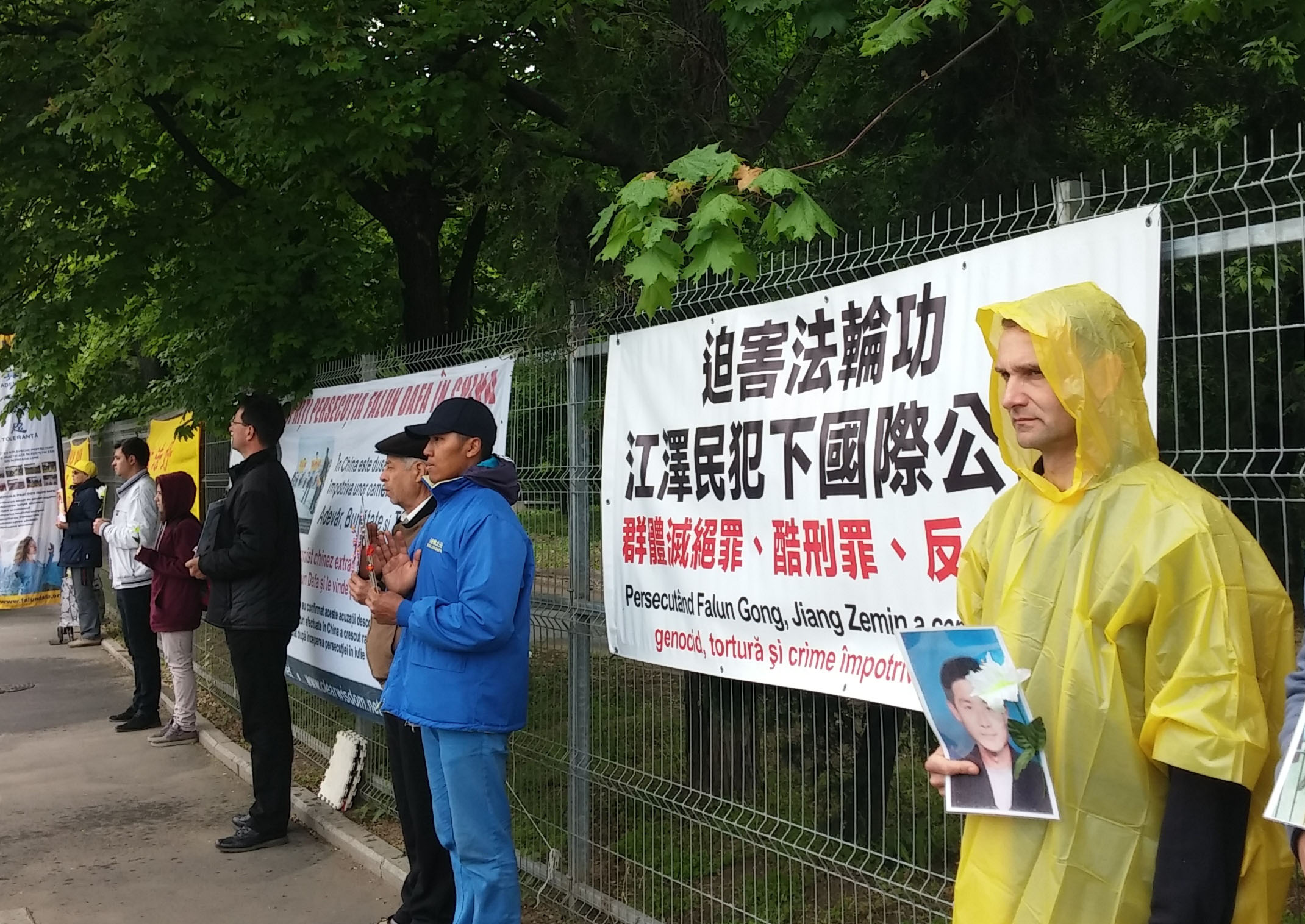 ![]() 罗马尼亚法轮功学员中使馆前纪念“四二五”,抗议中共迫害 |