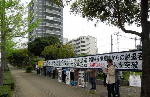 图1-3:二零一六年四月二十三日,日本熊本地区的法轮功学员在九州岛地区的福冈和长崎中领馆前集会,纪念“四二五”,呼吁制止迫害,法办元凶。