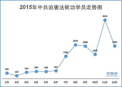 我们从表3可以看出,诉江大潮开启之前的一至四月份迫害人次为1772,每省(市)每月平均值为14.8%。诉江后的五至十二月迫害人次为17323,每省(市)每月平均值为72.2%,足见阻止法轮功学员诉江,非法打击报复原告是中共江泽民集团二零一五年下半年的主要罪恶。