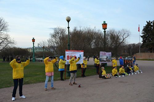 俄罗斯圣彼得堡法轮功学员于四月二十四日和二十五日,在圣彼得堡的战神广场和中领馆前等地揭露中共对法轮功的残酷迫害。