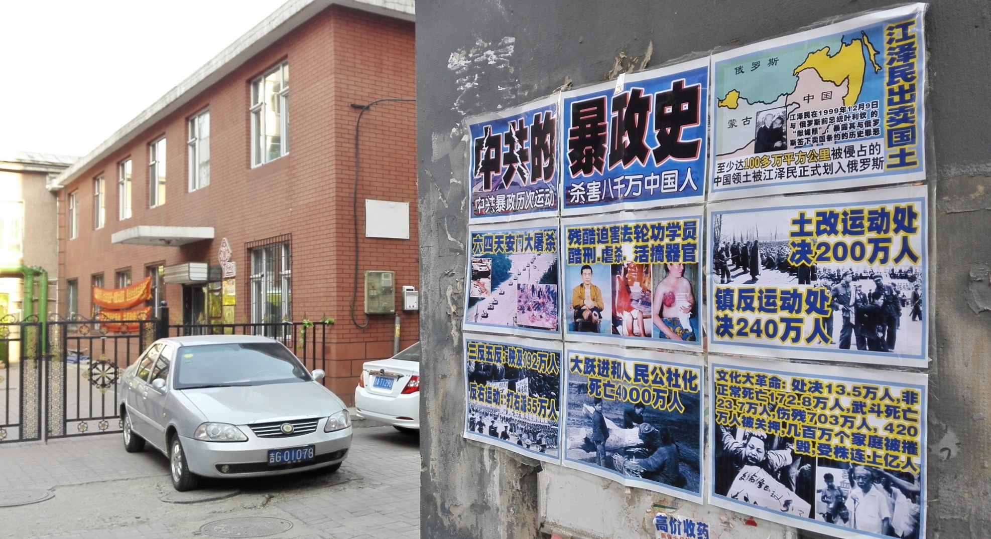 哈尔滨、吉林、廊坊、保定街头的真相展板、条幅