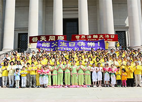 美国首都华盛顿及周边地区的法轮功学员聚集在美国国家广场,恭祝大法师父华诞,庆祝“世界法轮大法日”。